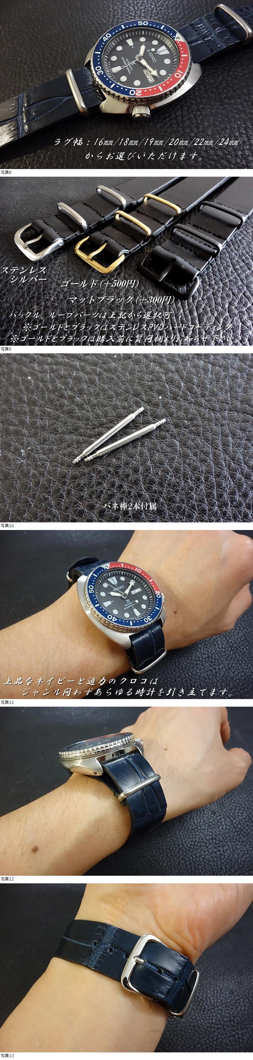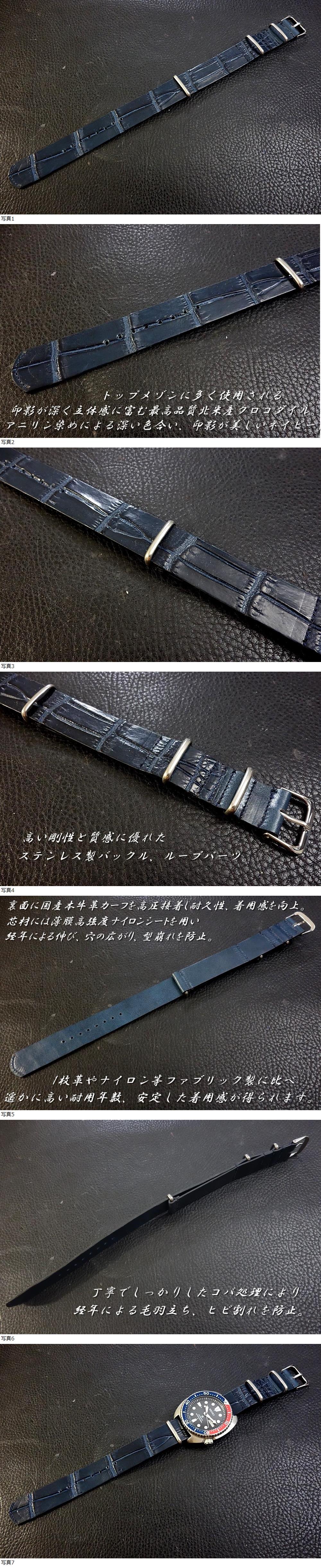 | ◆クロコダイルNATO G10Strap◆最高品質北米産本クロコダイル カスタムオーダー(ラグ幅/バックルカラー) ネイビー 受注生産 (納期10日前後) |