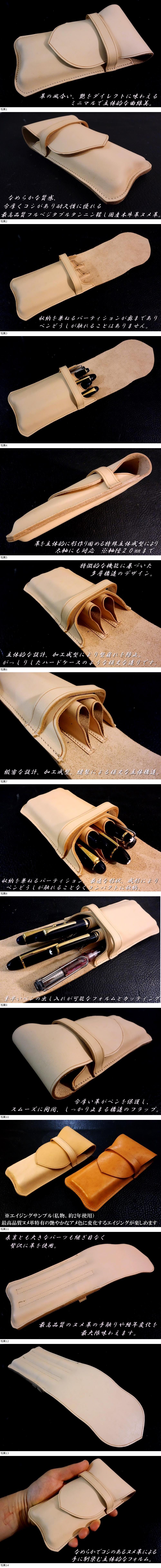 | ◆フルレザーフラップド万年筆ケース◆高品質国産本牛革ヌメ革 立体成型 NATURAL 5本挿し 太軸対応 日本製 |
