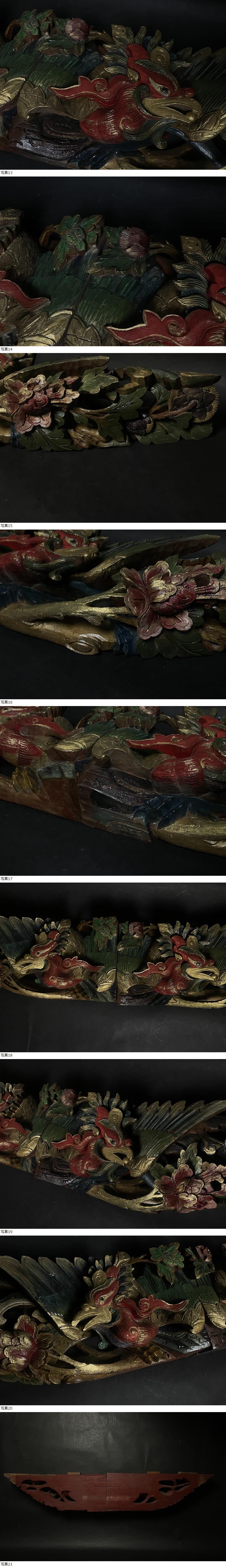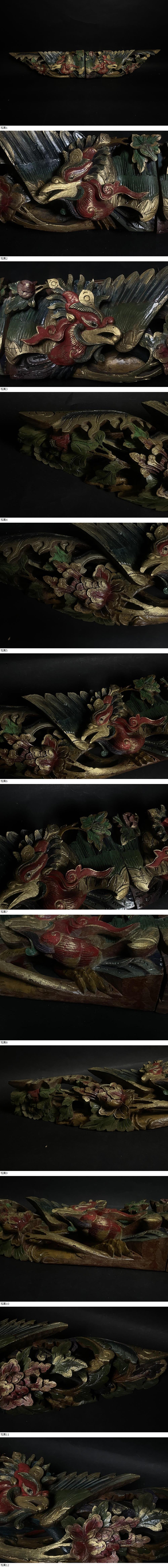 | 中国美術 木彫彩色鳳凰彫刻欄間 時代 看板 細密木彫 神社仏閣 幅約110cm |