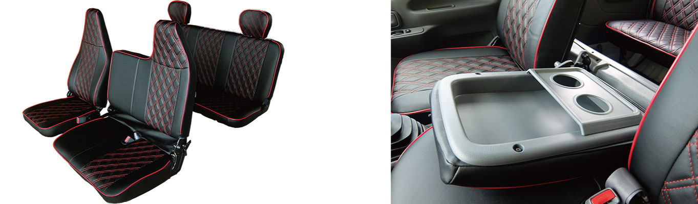 | 適合不可 | 中央席&助手席背もたれ一体型シート Eパッケージ ダブルキャブワイド幅 ビニールシート車(オプション) | ||