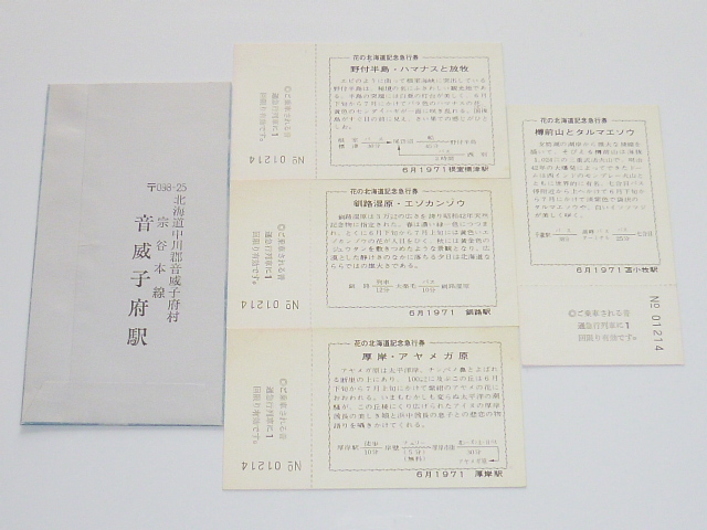 ※ 記念切符★花の北海道記念急行券★1971年6月★4枚★入れ物と切符は別物だ思います ※ 知り合いからの依頼品です。 長い間押し入れに保管されていました。 古いものですので小キズや擦れ、日焼け等の経年劣化がございます。 写真の(6、7枚目)封筒に入っていましたが、発行年が違うため切符とは別物だと思います。 切符の詳細については詳しくありません。 写真に映っているものだけですので、写真を見てわかる人のみ入札をしてください。 ※コメント※ あくまで個人で管理していた物ですのでご理解のうえ、ご入札いただき、ノークレーム、ノーリターン、ノーキャンセルでお願いします。 重さや大きさ厚さで送料が変わるため、商品によっては簡易包装になる場合がございます。 状態の捉え方には個人差がございます。 わからない事がございましたら、質問してください。 即決や値引きは考えていませんので終了時間までお待ちください。 大変恐縮ではございますが、新規の落札者様は落札後24時間以内にお返事をいただけなければ、キャンセルという対処を取らせていただきますこと、ご了承くださいませ。 ★☆注意☆★ 休日や仕事の都合などですぐには発送できない場合もございます。 |