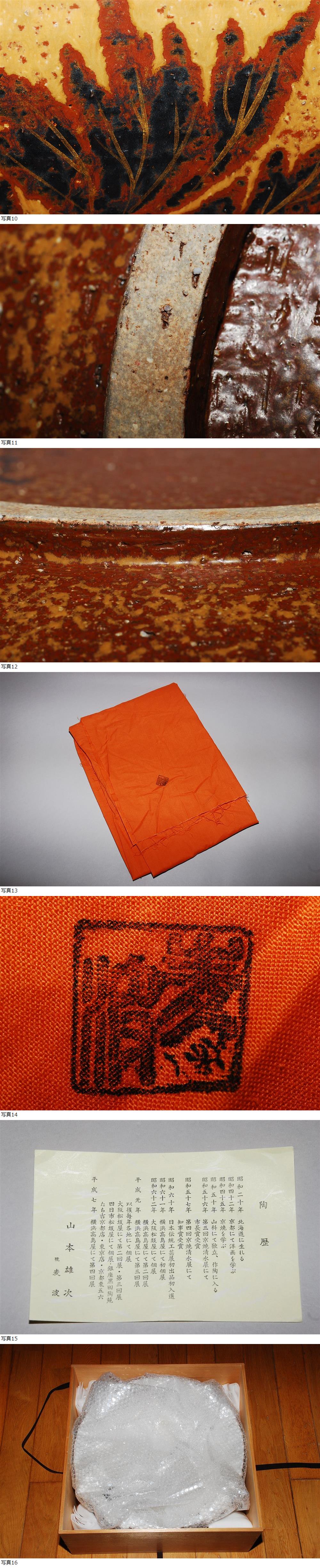| 【商品詳細】 山本雄次 造 大鉢の出品となります。 [サイズ] 高さ:14.6cm 直径:42.8cm 底部直径:21.6cm 重さ:4320g ※素人の採寸・計量ですので若干の誤差は御了承下さい 目立った傷もなく綺麗な状態です。 詳細な状態は画像にてご確認ください。 【送料】 ヤマト運輸140サイズでの配送を予定しています。 送料に関しましては、下記の料金表を参照して下さい。