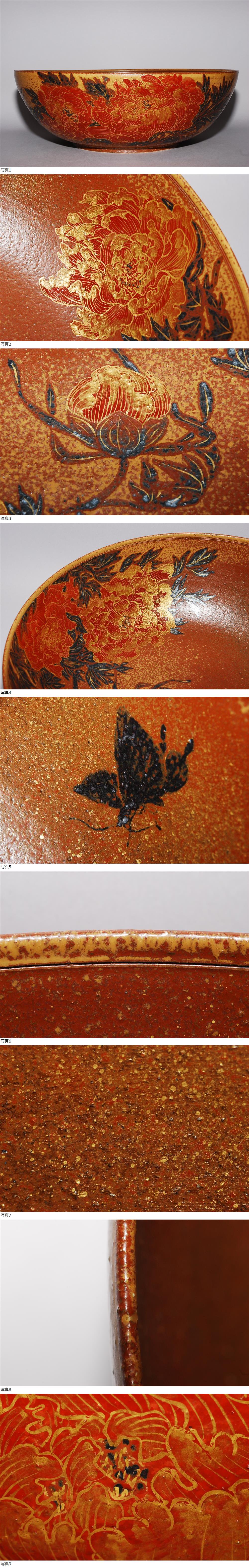 | 京焼 山本雄次 造 号:麦波 牡丹図 大鉢 直径:42.8cm 金銀彩 色絵 共箱 共布 栞付き 茶道具 | ||||||||||||||
