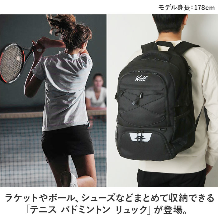 | 商品説明 | ・・ラケットやボール、シューズなどまとめて収納できる「テニス バドミントン リュック」が登場。 ・【B4サイズ対応のメインルーム】 ・メインルームはB4サイズ対応!ノートPCを収納できるクッションポケットや小物ポケットも搭載! ・【背面にラケット収納】 ・背面にはラケットが収納できるポケット付き。面ファスナーベルトでしっかり固定。 ・【ボール収納用ポケット付き】 ・フロント上部には、ボールが入る専用収納あり!ボールやシャトルをまとめて持ち運びできて便利。 ・【シューズ収納用ポケット付き】 ・フロント下部にはシューズの収納あり!独立して収納できるので、汚れを気にせず入れられる◎ ・【背負いやすいバックルベルトつき】 ・サイドには荷物の幅を調節できるバックルベルト付き。チェストベルトも付いていているので、背負った時にズレにくい。 ・【様々なスポーツシーンに】 ・テニスやバドミントンはもちろん、バスケやバレー、サッカーなどの大きめのボールを使うスポーツにもおすすめ。 ・【ポケット仕様】 ・メイン収納:オープンポケット×1、メッシュオープンポケット×1、ペンポケット×1、ファスナーポケット×1、PCポケット×1 ・バック:ラケットポケット×1、(内側:オープンポケット×1) ・フロント:ファスナーポケット×1、ボールポケット×1、シューズポケット×1 ・サイド:メッシュオープンポケット×2 |