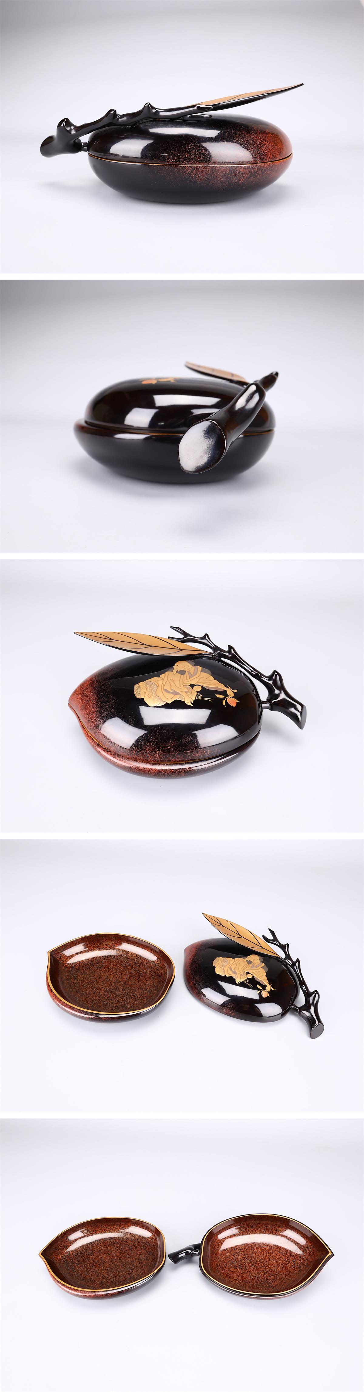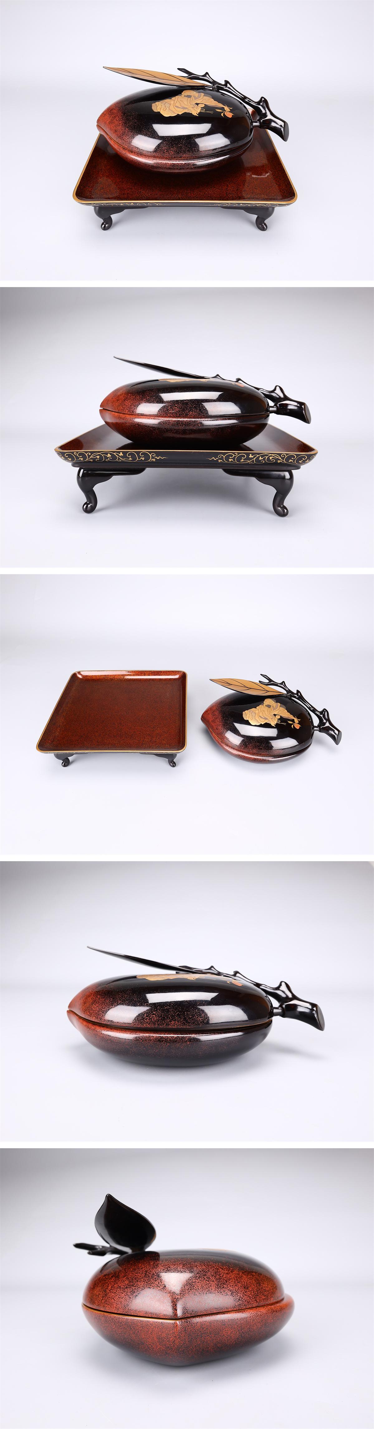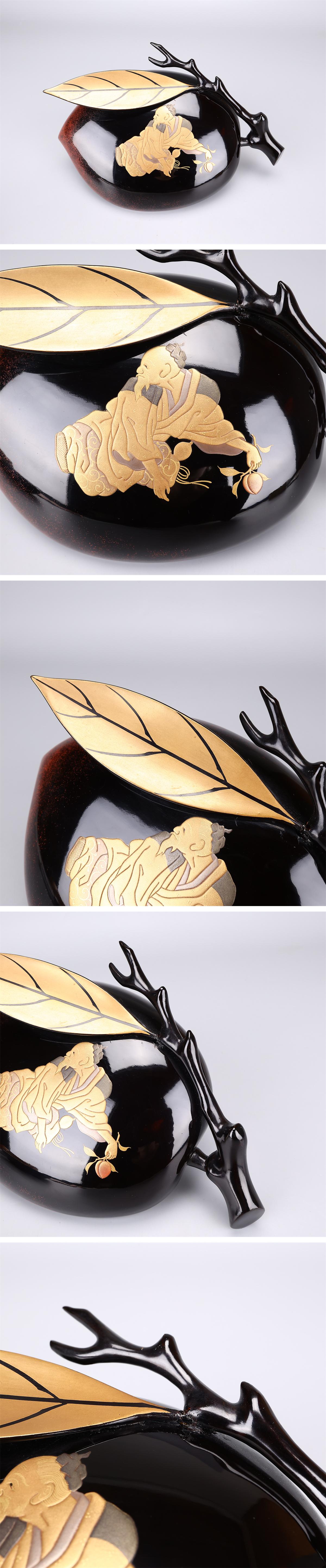 【吉】SA526 時代 木製漆芸 【金彩蒔絵】 人物紋 桃形 菓子器/箱付 時代の擦れありS! [浏览原始页面]