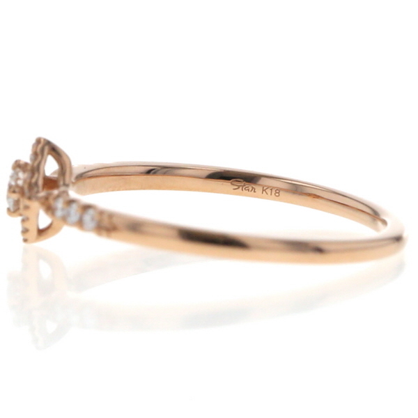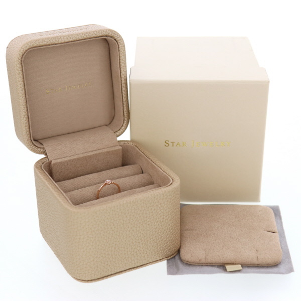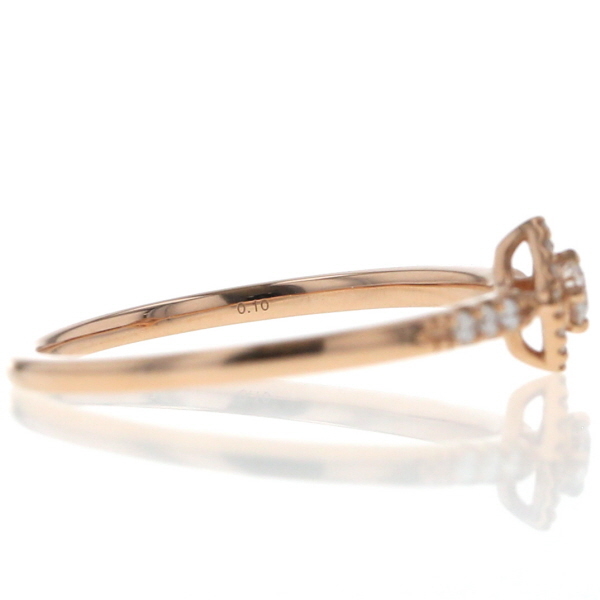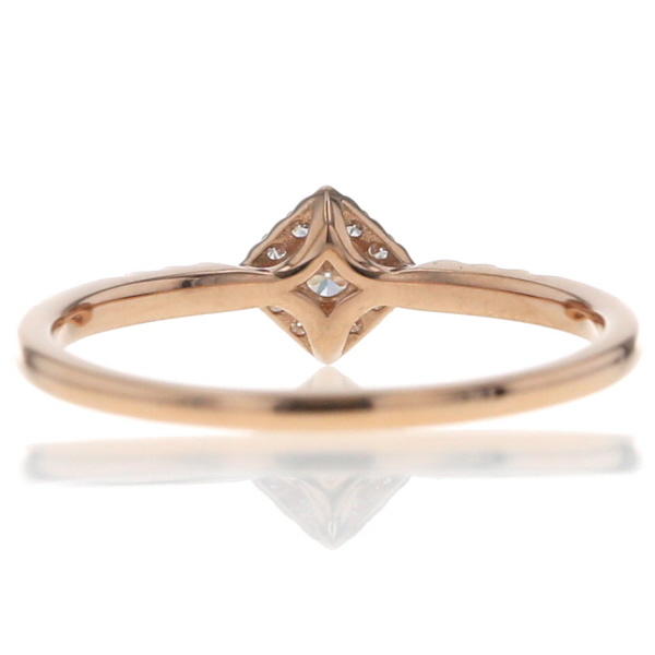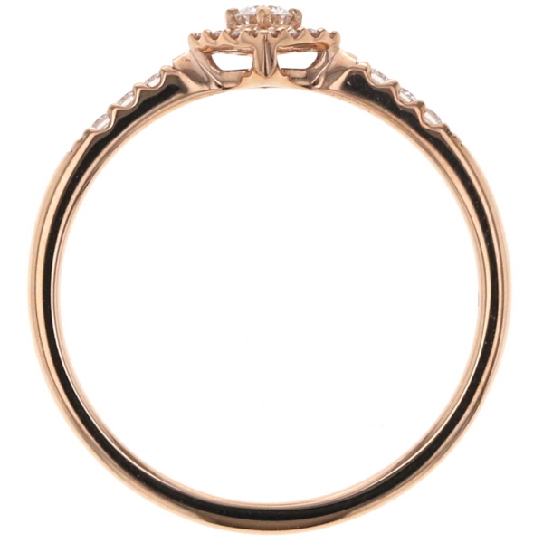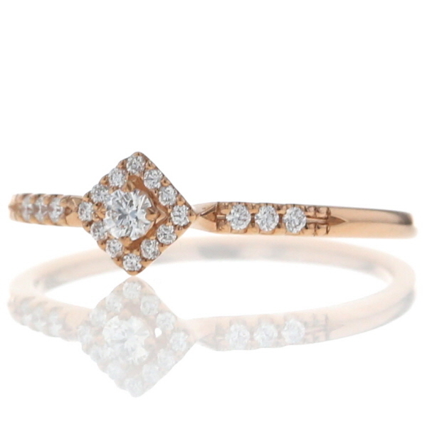 | 商品紹介 | スクエア状にダイヤを取り巻いたセンターストーンが印象的なピンクゴールドリングです。 中央のラウンドダイヤを囲むヘイローデザインが光を多方向に反射し、さらにアームへ続く繊細なメレが連なることで、手元に立体的な輝きが宿ります。 可愛らしさと端正さを併せ持つフォルムで、現行モデルらしい上質な仕上がりが新品仕上げによりいっそう明瞭に映える一品です。 |