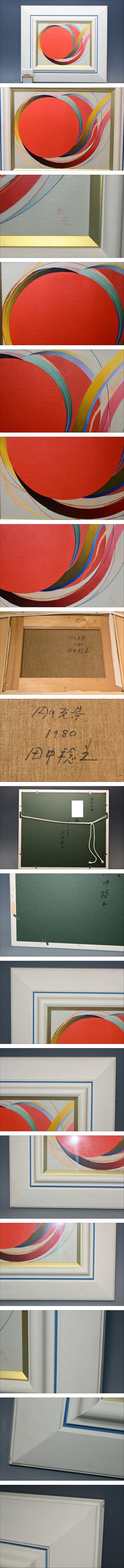 真作 田中稔之 油彩『円の光景』F3 1980年 サイン有 額装 山口県防府市生 向井潤吉に師事 行動美術協会会員 抽象画 油絵 絵画 | |||