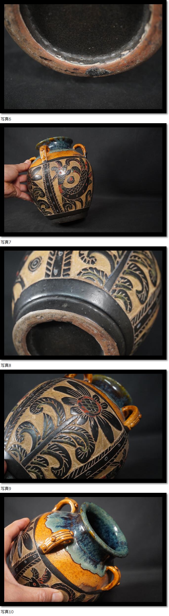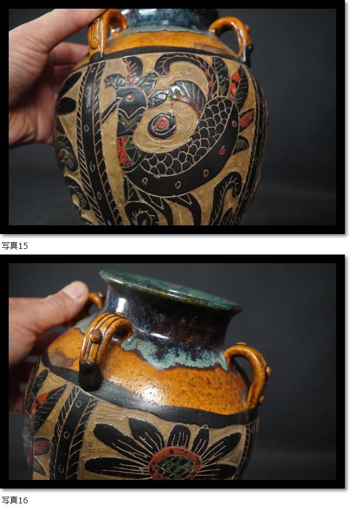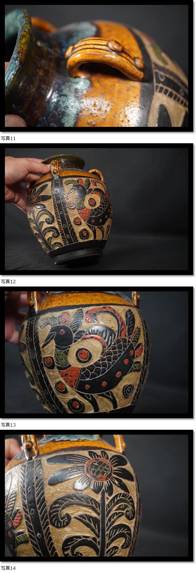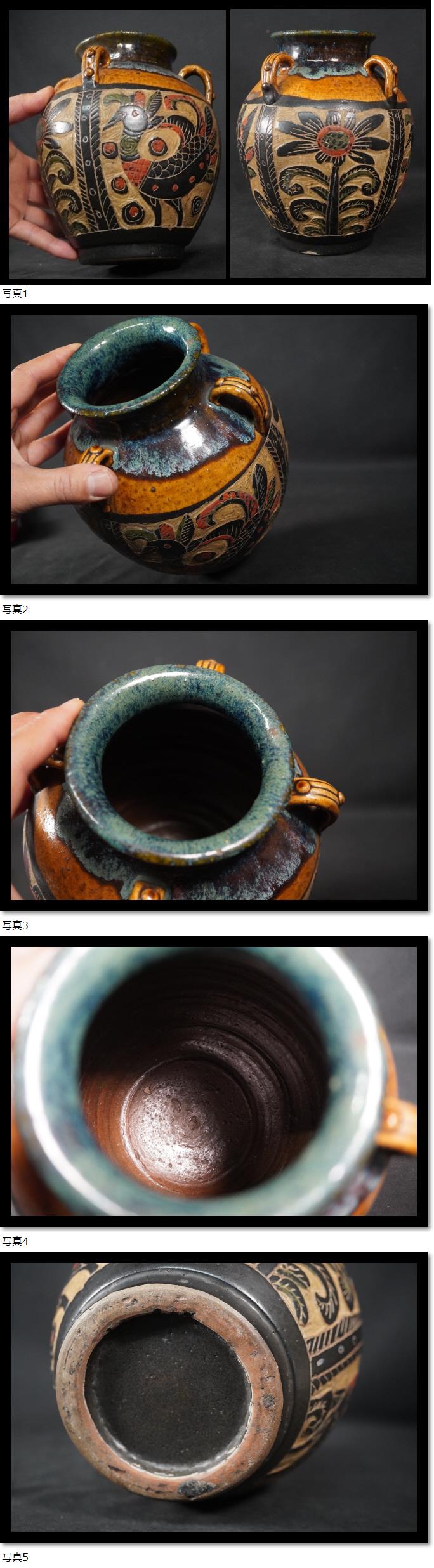 | 琉球 壼屋 沖縄 鳥花 花瓶 耳付き 壺 |