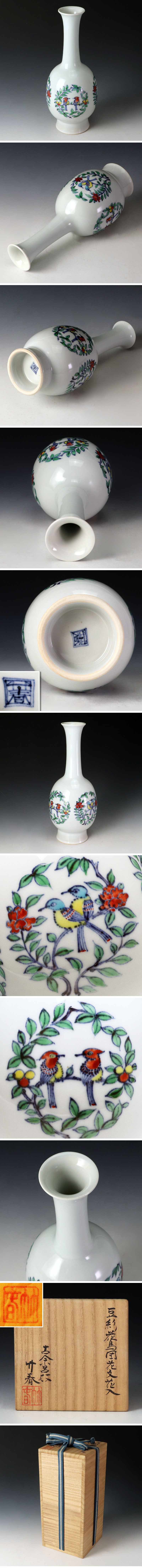 | 【古美味】古余呂技窯 川瀬竹春 豆彩花鳥団花文花入 茶道具 保証品 |