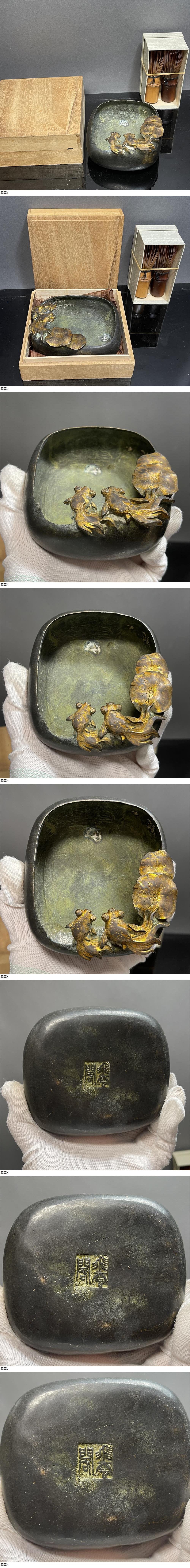 | 【C155】清時代 古銅 塗金 水丞 共箱付 水丞 水盂 墨池 水差し 書道具 文房具 賞物 置物 時代物 中国古美術 |