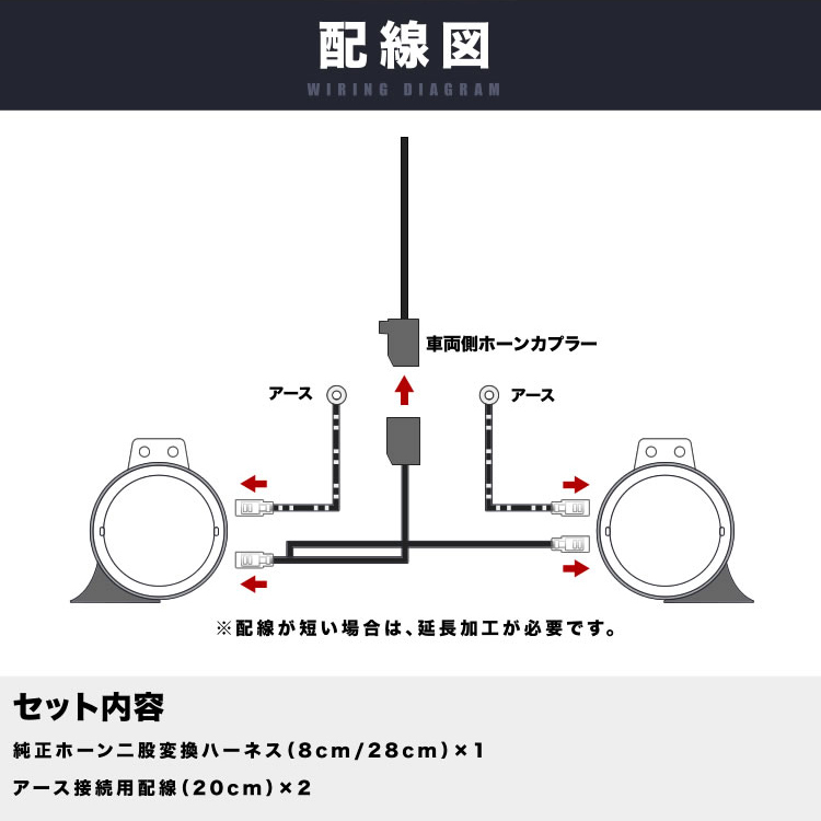 | セット内容 | ホーン二股変換ハーネス×1・アース接続用配線×2 |