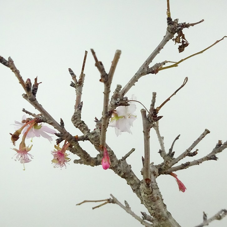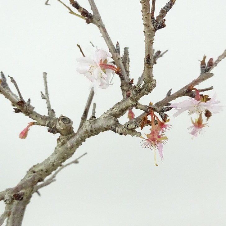 | ■植物ですので撮影時期や季節によって剪定などの手入れにより写真から変化がございます。撮影日をご確認のうえ、ご注文ください。 【桜盆栽】 桜の原種は11種確認されており、これらの変性や交雑、園芸種など数えきれないほど沢山の種類や品種があります。一重咲き、八重咲き、枝垂れなど、日本国内だけでも600種以上が確認されています。 〈信濃寒桜〉 白~淡い桃色の小輪の花。秋頃から春にかけてぽつりぽつり少しずつ開花します。 |