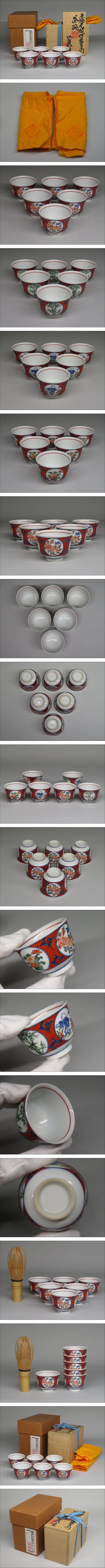 | 煎茶道具◆「三浦 竹泉」造 赤絵丸紋四君子図煎茶碗 六客 双重箱◆茶道具/煎茶道具 | ||