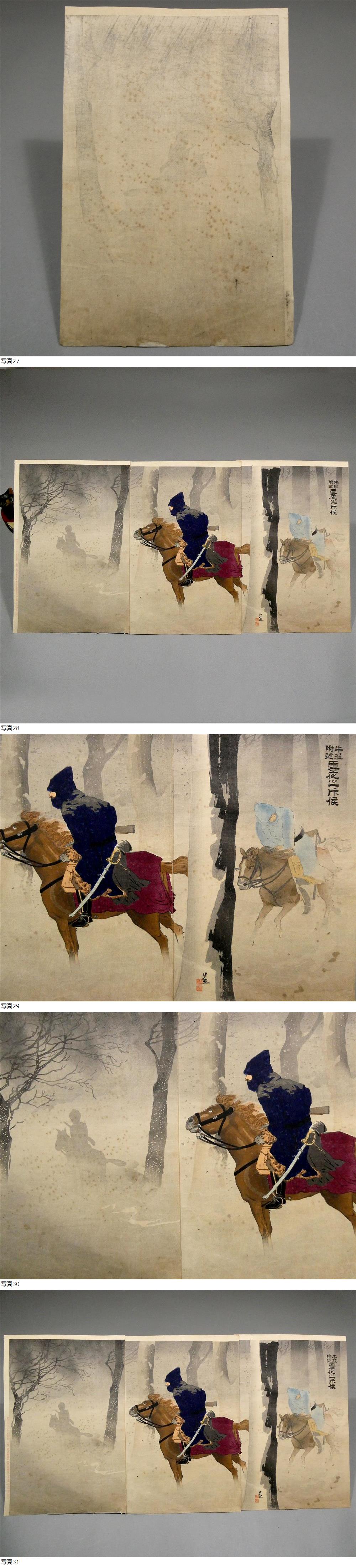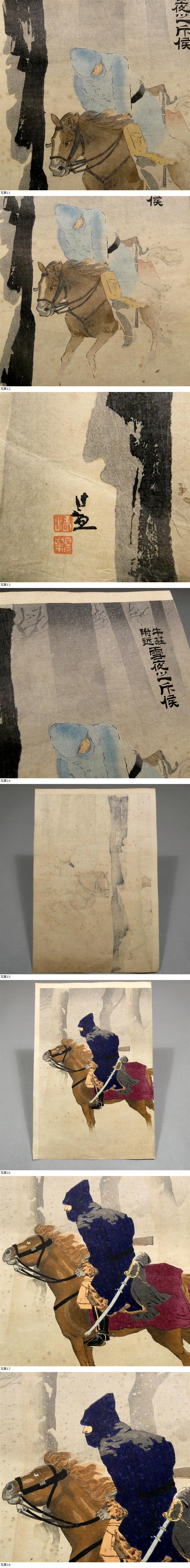 ■ 小林清親 明治27年 木板浮世絵 「牛荘附近雪夜之斥侯」3枚続揃い 日清戦争錦絵 叙情性を湛えた作品 ■