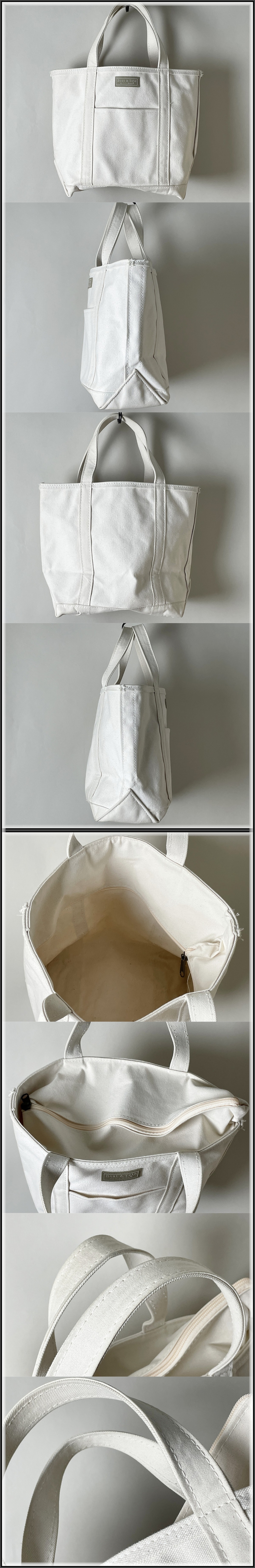 ブランド名:L.L.Bean エル・エル・ビーン LLビーン サイズ 横幅上部約38cm 横幅下部約29.5cm 縦幅約31cm マチ約14.5cm 持ち手40.5cm程度です。 ※肩掛けがぎりぎりできるサイズ感です。 当方普通体型の男性でタイト目のライダースやテーラードジャケットで肩掛けできました。 ※個人差がありますのであらかじめご了承ください。 色:アイボリー 正規品の本物の商品です。 素材:コットン100% 状態はUSEDです。 ※底部分の4つの角に若干のスレと若干の汚れが見られます。 ※持ち手等特にですが、表裏面共に若干の汚れが見られます。 また全体的に若干の使用感等が見られます。 素材にハリ感が残った状態です。 名作定番と言える有名なトートバッグです。 大変希少なUSA製です。 実用性や価格とのバランス、さりげない印象やアイテム自体の雰囲気が素晴らしく、様々なシチュエーションにご使用頂けると思います。 耐久性も非常に高いです。 外側には財布や携帯を入れるのに便利なポケットが付いております。 オリジナルトートと同じ厚手の24オンスキャンバス生地を使用し頑丈に縫製され5年後、10年後も手元に残り愛用していそうな雰囲気があります。 1944年以来、今なお米国メイン州のブランズウィックにある自社工場で、 ひとつひとつ手作りされているmade in USAです。 またトップ部分はファスナーで開閉できるので、普通のバッグのように使えると思います。 一般的なバッグのサイズ感です。 アウトドアブランドながら、一流品のバッグとも評される万人に愛されるブランドで、ヴィンテージウエアには抜群の合わせやすさですし、モード系の外しとしても使えるバッグです。 アイボリー一色のバッグでロゴ部分が新しいモデルです。 よろしくお願いいたします。 |