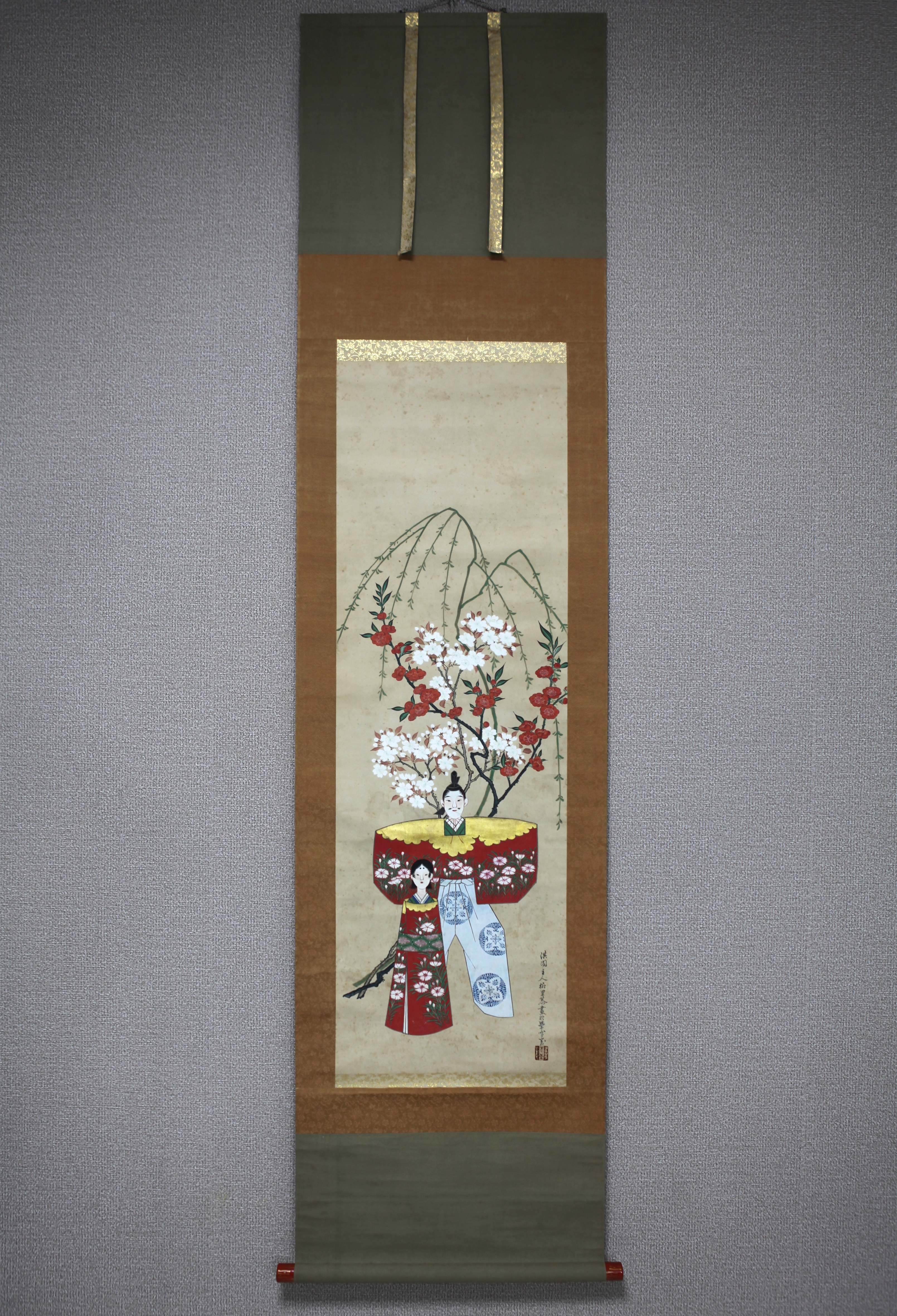 | 【真作】【風車】 柳沢淇園 「桃花立雛図」◎肉筆紙本◎巨匠 江戸中期の画家 公美 柳里恭 大和郡山藩の重臣 文人画の先駆者 | ||||||||||||||||||||