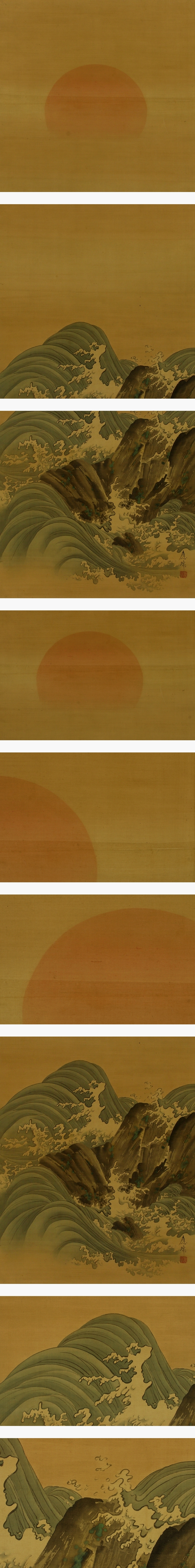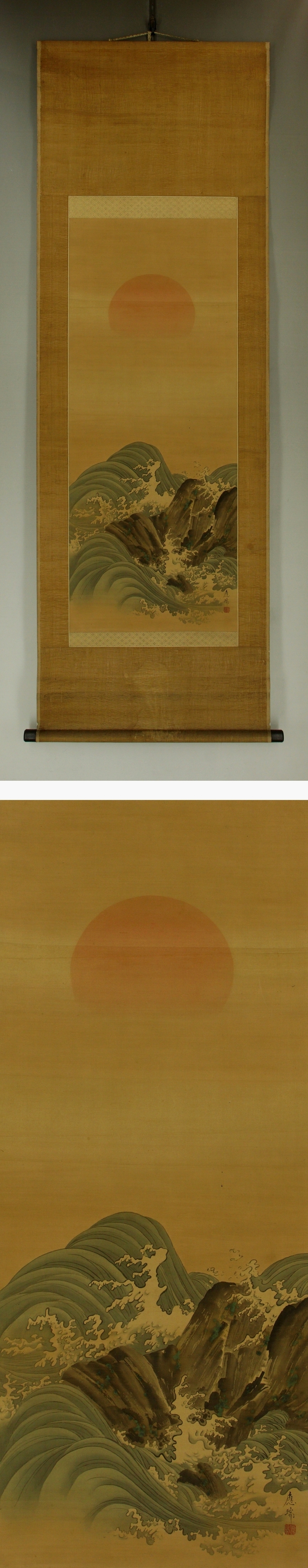 | №2503037【模写】円山応瑞【日の出波】◆絹本◆合箱◆掛軸 | |