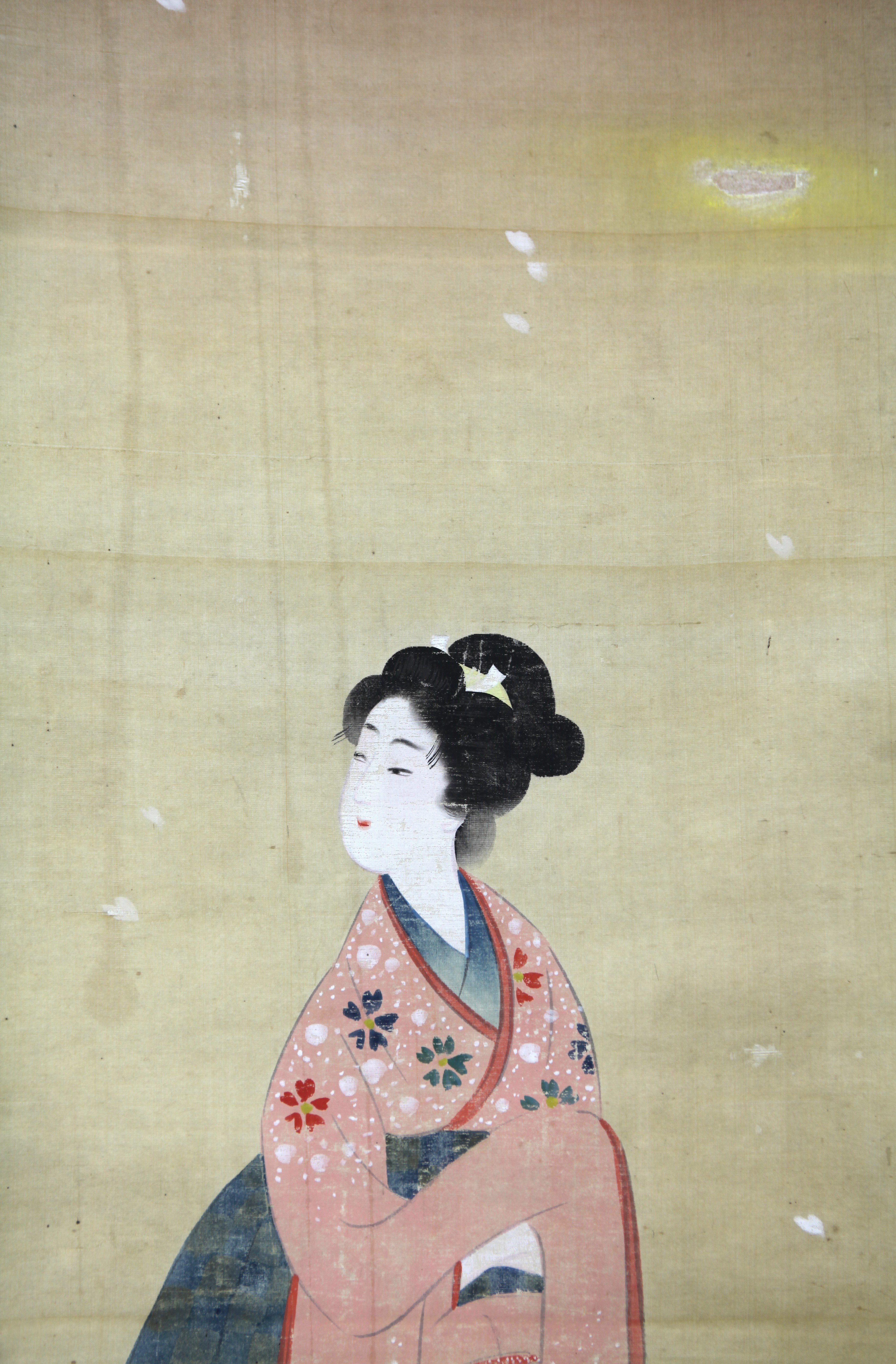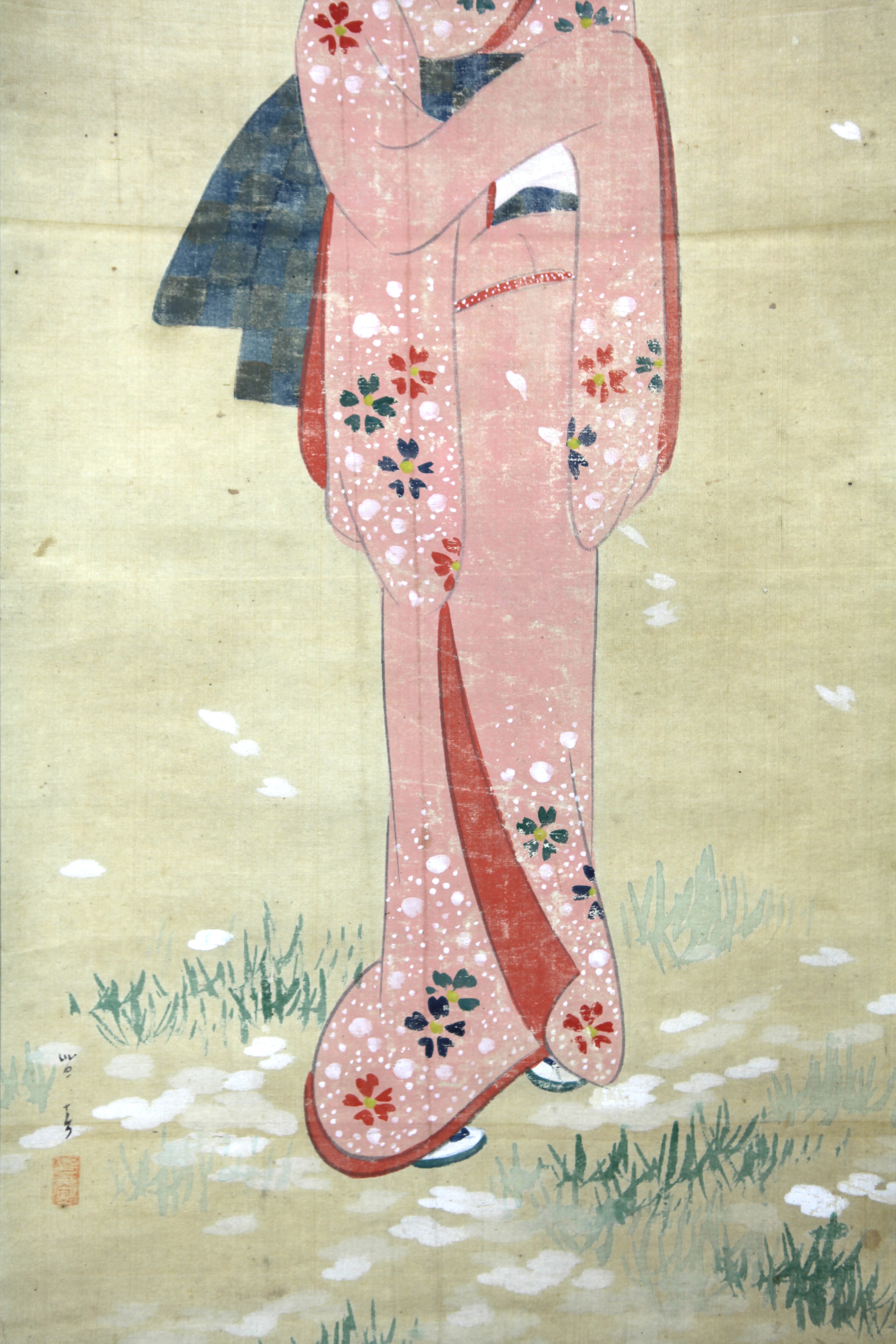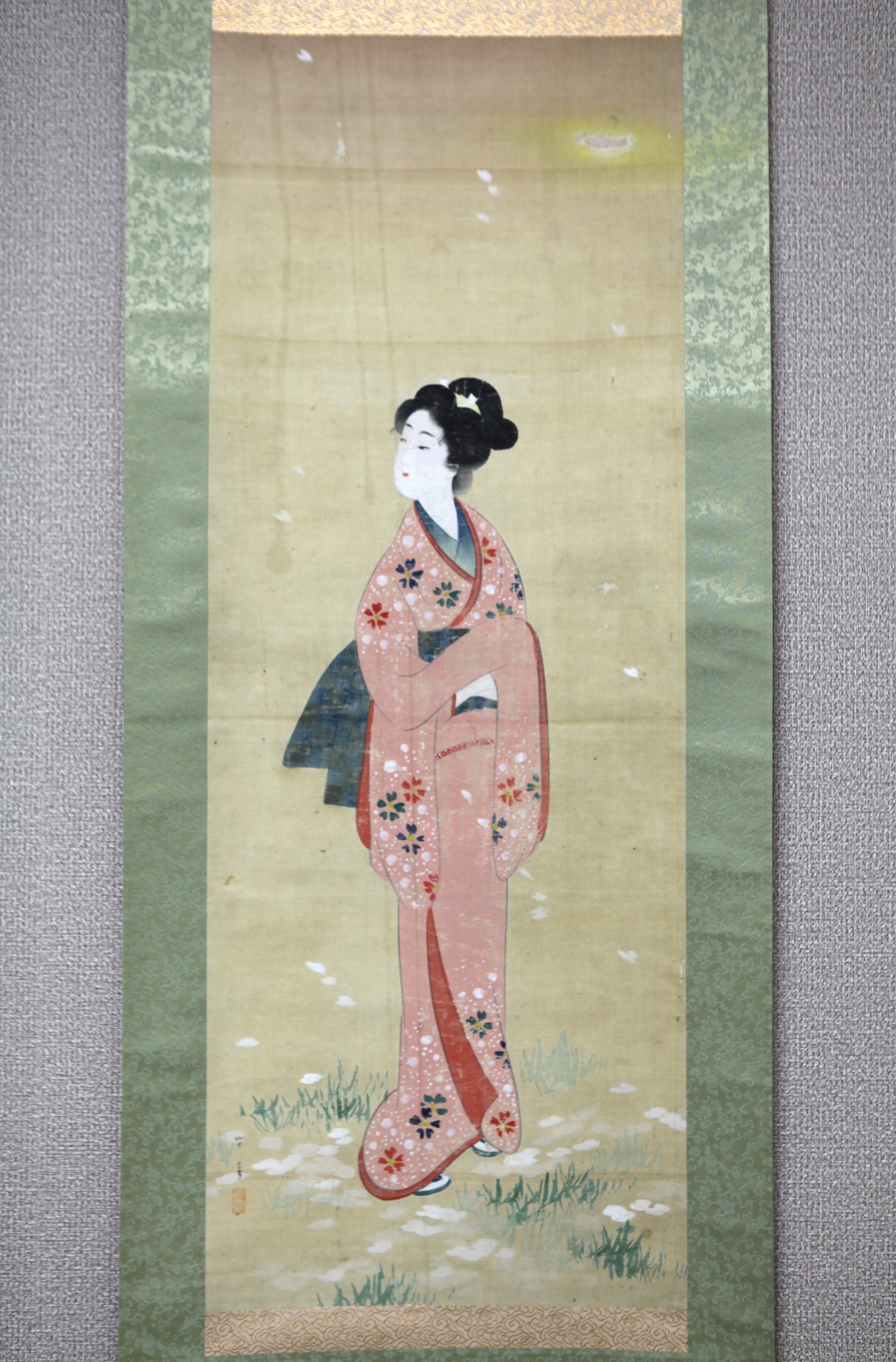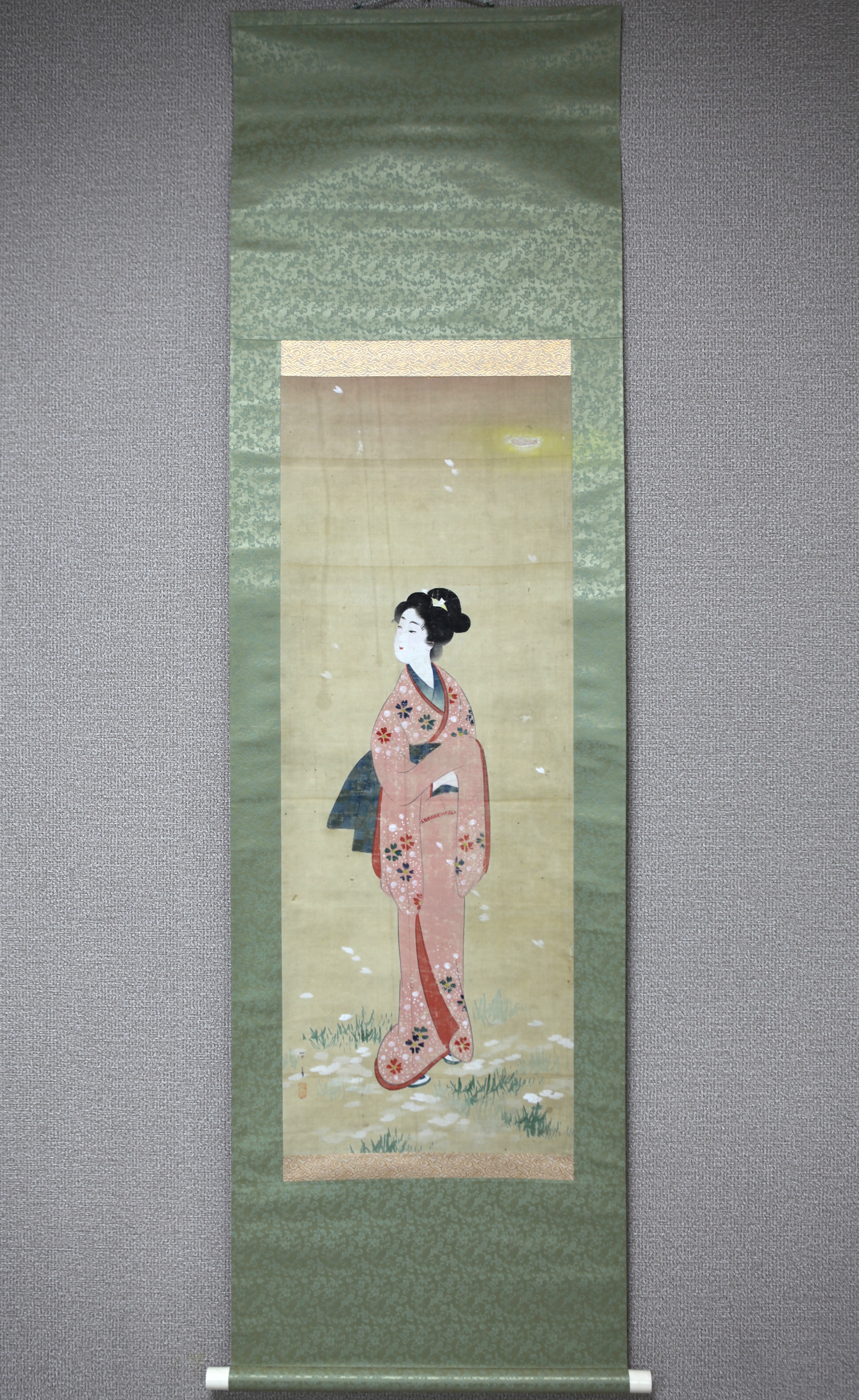 | 【真作】【風車】 高橋皆春 「桜美人図」◎肉筆絹本◎明治大正期の絵師 東京都出身 文帝展出品 | ||||||||||||||||||||