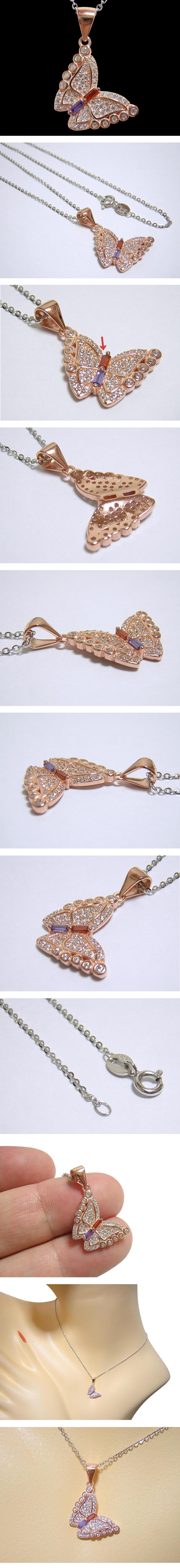キュービックジルコニアを使用したバタフライモチーフのペンダントネックレスです。