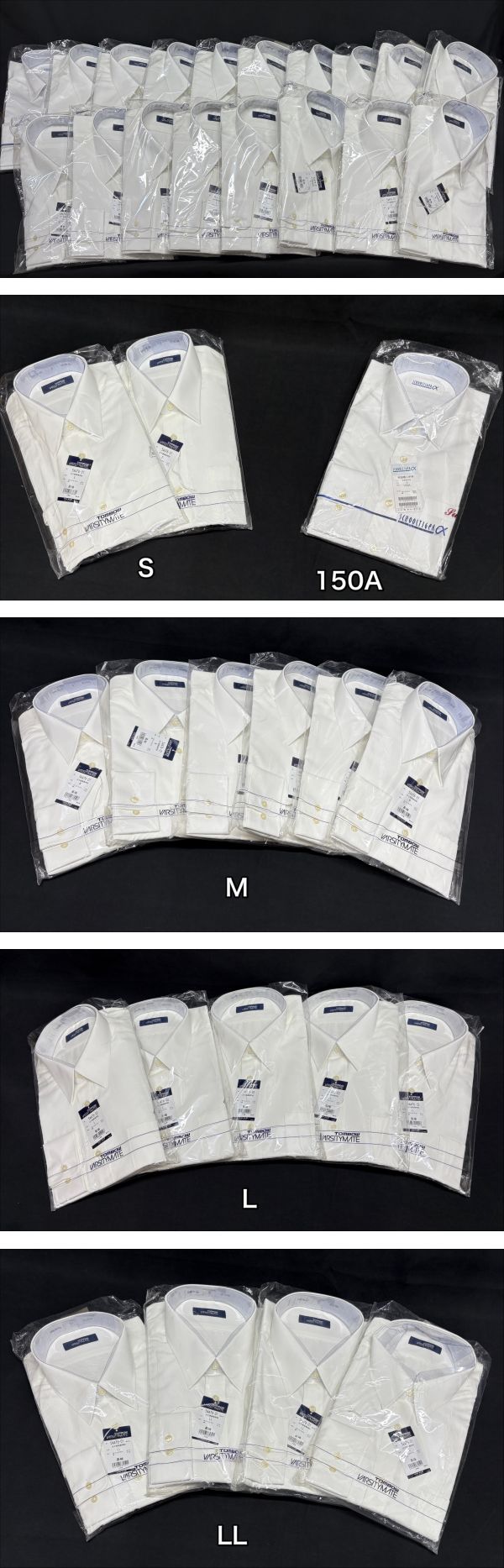 | 商品説明+++ ☆☆御覧いただきありがとうございます☆☆ 必ず最後まで説明文をお読みいただき納得していただいたうえで入札をお願いします。 他にもCDやレコードを出品しています。 商品写真を大量にアップしています。 携帯でアクセスされていらっしゃる場合は写真が全て表示されない場合がありますので、 パソコンでのご確認をお願いします。 スマホでアクセスされていらっしゃる場合は、モバイル表示ではなくPC表示でご確認お願いします。 ★★ 衣料品セット ★★ ■他にも同等の衣料品セット等を出品しています。 同梱不可です。 衣料品店在庫の未使用品ですが、長期保管のため、畳みジワがあります。プロフィール欄に発送についての注意書きを記載しております。 必ず一度お読みいただいた上で、ご入札をお願いいたします。 ※※※※※ ●日にち指定/時間指定は取引情報のご入力時に取引メッセージにてお知らせ下さい。 (※取引情報入力後の日時指定はお受けいたしかねます) ※※※※※ また汚れ、シミ、ヤケなどもございます。 画像にあるものが商品の全てです。 ・カッターシャツ...18点 S...2着 150A...1着 M...6着 L...5着 LL..4着 こちらの商品について専門知識がありません。 ご質問頂いてもお答えすることができません。 写真を大量にアップしていますので、写真を見てご自身で判断をお願いします。 かなり前の商品ですので、経年劣化による日焼けやシミ・汚れなど 細かいことを気にされる方は入札ご遠慮ください。 商品の細かな状態確認、クリーニングなどはしていません。 すべて現状のまま発送になります。 ●発送について 発送方法は佐川急便(元払い)のみです。 お支払い手続き確認後、出来る限り迅速な発送を心掛けております。 発送日は基本的に日曜以外となります。 (発送に遅れが生じる場合はその旨ご連絡させて頂きます。) 送料についてですが、誤差の返金はできません。 もし請求サイズより1サイズ大きいサイズになりましても追加請求は致しませんので、ご安心ください。 ほかに何か気になることや疑問などありましたら、入札前に必ず質問欄からお願いします。 落札後の交渉などはお受けできません。 ■■送料■■ 発送方法は佐川急便(元払い)のみです。 【北海道】 2,810円 (北海道) 【北東北】 2,340円 (青森・秋田・岩手) 【南東北】 2,220円 (宮城・山形・福島) 【関東】 2,100円 (茨城・栃木・群馬・埼玉・千葉・東京・神奈川・山梨) 【信越】 2,100円 (長野・新潟) 【東海】 1,980円 (静岡・愛知・岐阜・三重) 【北陸】 1,980円 (富山・石川・福井) 【関西】 1,980円 (京都・滋賀・奈良・和歌山・大阪・兵庫) 【中国】 1,980円 (岡山・広島・山口・鳥取・島根) 【四国】 2,100円 (香川・徳島・高知・愛媛) 【北九州】 2,100円 (福岡・佐賀・長崎・大分) 【南九州】 2,100円 (熊本・宮崎・鹿児島) 上記一覧に掲載のない沖縄や離島の方は「ゆうパック着払い」での発送になります。 | |||