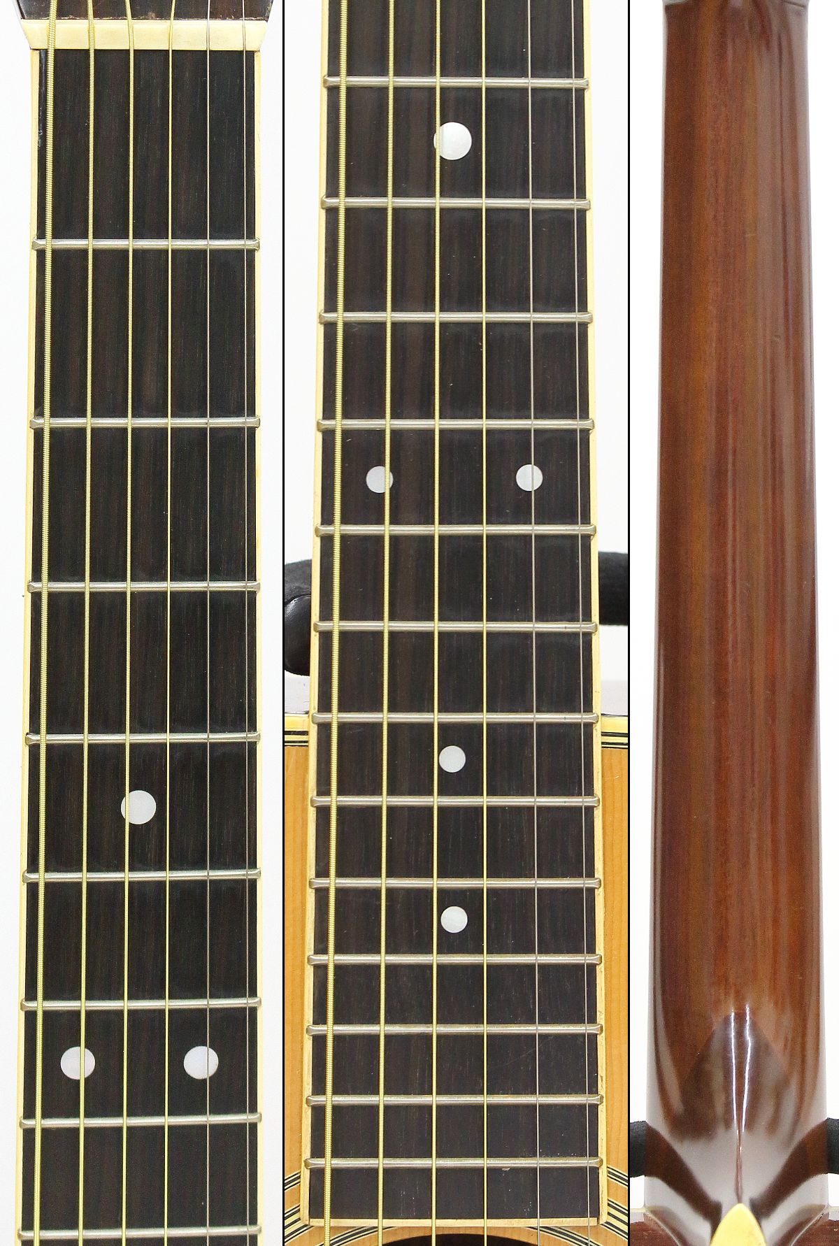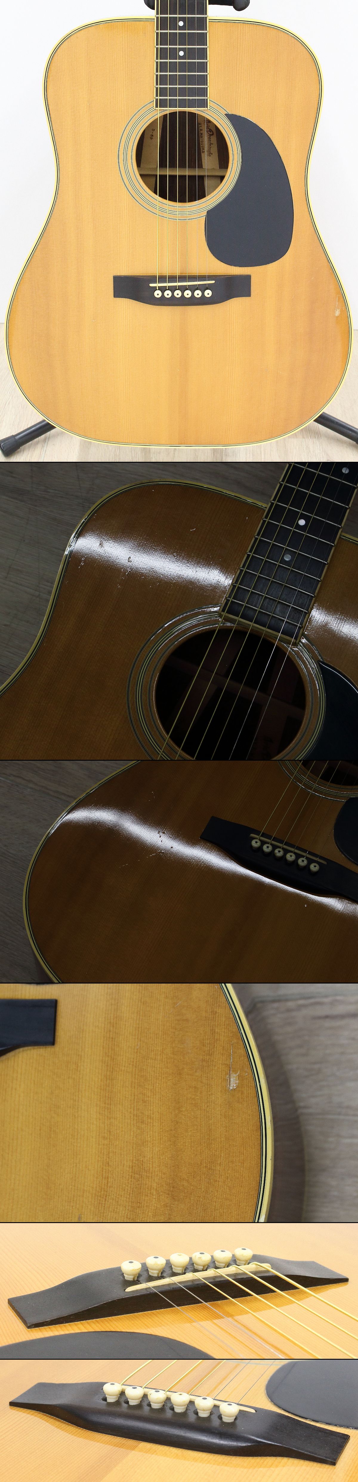汎用ハードケース 【仕様】 シリアルナンバー:751023 トップ:スプルース単板 サイド:ローズ バッグ:ローズ単板 ネック:マホガニー 指板:エボニー スケール:648mm 弦高:(12F) 1弦:2.2mm 6弦:3.0mm 1975年、松岡良治工房製造のモデルになります。 トップとバックに単板を使用したD-35スタイルの中級モデルです。 【動作・状態・コンディションランク】 ※コンディションランクについてはあくまで目安です。参考程度にお考え下さい。 ※状態に関しては当方の主観のため、細かいことを気になさる方はご入札をご遠慮願います。 コンディションランク「 B~C」 ------------------------------------- S:未開封品または未使用品 A:使用感が少ないもの B:キズ・汚れがあるもの C:キズ・汚れなどの傷みが多いもの D:一部、状態不良や破損など難があるもの J:ジャンク品 ------------------------------------- ギターショップにてメンテナンス済みです。 ネックに反りはありません。フレットの減りはほとんどありません。 本体外観は経年や使用に伴うキズ・汚れが見られます。 ボディに打痕・キズがあります。 底面にキズが目立ちます。エンドピンがありません。 画像をご参照の上、ご理解・ご入札をお願いいたします。 |