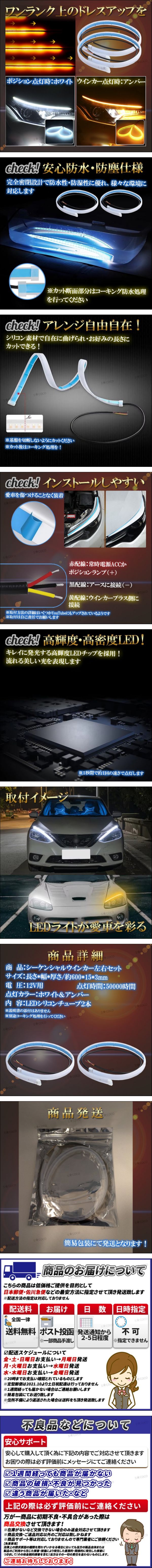 | シーケンシャルウインカー 流れるウインカー LED テープライト シリコンチューブ 極薄 12V ホワイト アンバー 汎用 60cm 白 黄色 2本 | ||