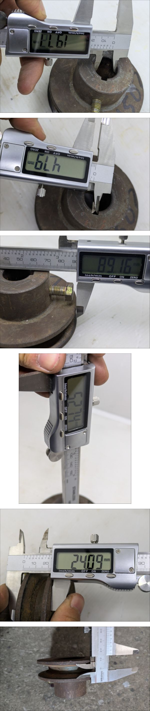 | ●●最後まで読んで下さい●●納得した上でご入札してください●● ●大型機械用のアカウントは**こ ち ら**です。 ●当方の別出品物を同時購入しても送料分安くなりません。 ●発送料金は入札ボタン付近にあり、沖縄、北海道、離島以外一律です。 ●塩尻市から発送します。 ●離島発送はできない場所がございますので、事前にお問い合わせください。 ●発送日は月、水、金、日です。急ぎの場合はご連絡をお願いします。 ------------------------------------------------------------------------------------------- ●1連のプーリーです。 ●Bベルトです。 ●軸 径:約Φ20mm ●鍵 幅:約5mm ●プーリー外径:約Φ89mm ●全体 厚さ:約52mm ●ベルト部 厚さ:約24mm ●ねじ付きです。 ●書いたインクは消さずに発送します。 ●素人寸法のため、測定誤差があります。 ●中古品のため、サビや汚れがあります。 ●錆は各自で取り除いてください。 ●現状写真の通りのまま送ります。 ------------------------------------------------------------------------------------------- ●下の方にも画像がございます。※たまに写真の枚数が不足していて画像がない場合があります。 ●落札後、ご指定配達の時間帯がある場合はあらかじめご連絡してください。 | |||