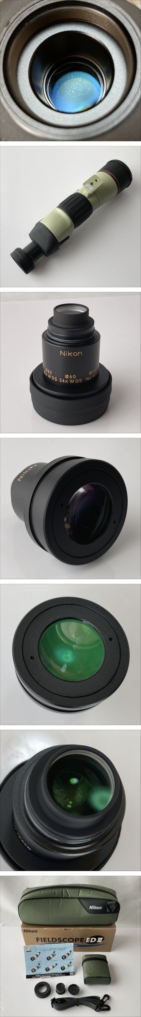 | 商品説明 | ◇◇◇ 商品状態 ◇◇◇ ● 動作確認済です。 ● 本体レンズに点状の汚れがございます(写真10,11枚目参照)。 ● その他、細かい傷や汚れ,レンズの塵等がございますが、外観は目立った傷や汚れ等のない、良好な状態の商品です。 ※ 写真が暗くて見づらい場合は、恐れ入りますが画面を明るくしてご覧下さい。 ---------------------------------------- ブランド : Nikon ニコン 型番 : FIELDSCOPE EDⅢ フィールドスコープ ---------------------------------------- 【付属品】 ● 本体 ● DS接眼レンズ(16X 24X 30X WDS) ● ソフトケース ● キャップ等 ※写真に写っているもので全てです。 【出品前清掃】 簡易クリーニング済です。 ----- 特徴(web抜粋) ----- ●本体内部に窒素ガスを充填した防水型*。雨天での観察や気温差の大きな場所での使用でも、レンズ内部に曇りが生じにくくなっています。 ●対物レンズに色のにじみを良好に補正するニコン独自のEDガラスを2枚採用。対物レンズ有効径は60mm。 ●レンズ、プリズム、防塵ガラスの全面に多層膜コーティングを施し、より明るいシャープな視界を実現。 *2mの水深に5分間浸かっていても内部光学系に異常がなく、観察に影響のない防水設計。ただし、水中での使用はできません。 中古 単眼鏡 アイピース FIELDSCOPE EDIII |
