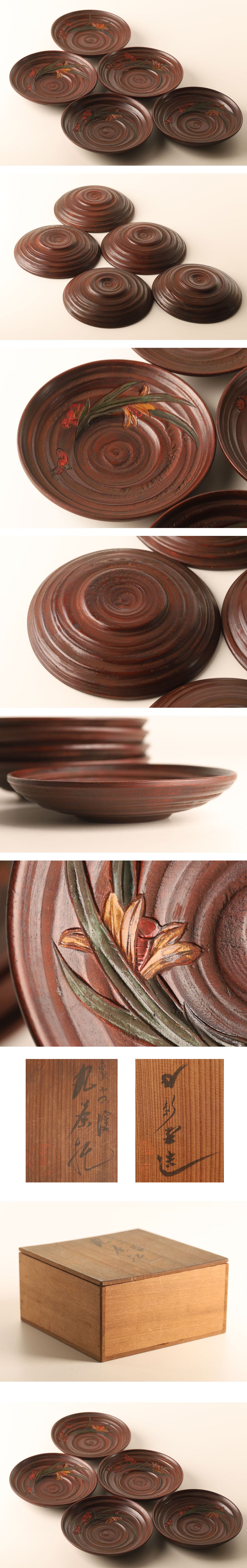 【流】讃岐漆芸 讃岐彫 彩色茶托五客 共箱 HD844 [浏览原始页面]