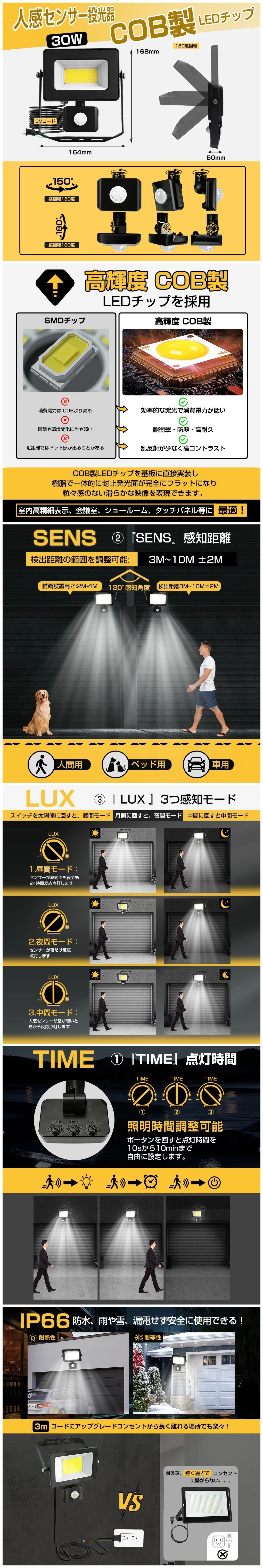 「SENS」:センサーはPIR人感センサー検出器で、最大検出距離を3-10メートル間に自由設定することができます。