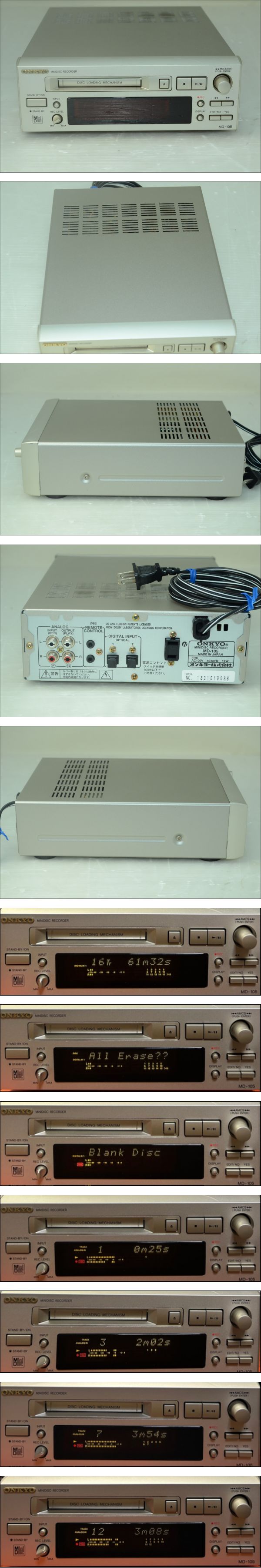 ONKYO オンキョー MDデッキ MDプレーヤー MD-105 録音、再生 音出し確認 [浏览原始页面]
