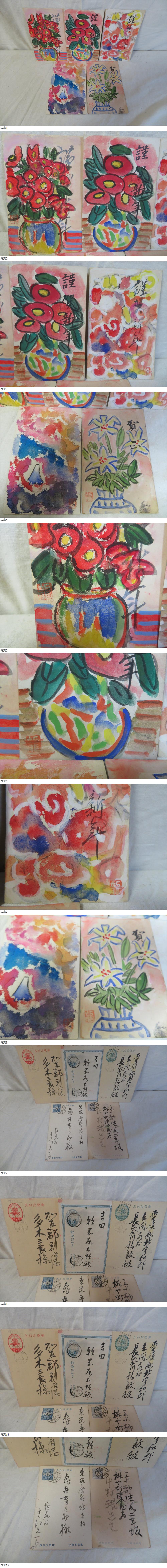 明治期から昭和にかけての梅原龍三郎 直筆に肉筆絵の絵葉書エンタイア、色々5点まとめ出しです。 (その他にも巨匠、著名画家の直筆の肉筆絵、エンタイアを出品しております。) 現状品です。葉書、全てに梅原龍三郎の落款がある本物保証です。 印刷、木版画でもなく葉書に梅原龍三郎が明治、大正、昭和時に直接で描かれてる非公式の貴重な肉筆絵のエンタイアです。 ある意味では未発表の限定作品にも思えます。市場にも、めったに出回らない稀少な直筆の肉筆絵の葉書1枚でも作品として相場は見られてる御品でコレクター様、業者様にも大変貴重な豪華なまとめ出しです。 梅原龍三郎 梅原 龍三郎(うめはら りゅうざぶろう、1888年〈明治21年〉3月9日 - 1986年〈昭和61年〉1月16日)は、日本の洋画家。京都府京都市下京区生まれ[1]。はじめ龍三郎、1914年(大正3年)までは梅原 良三郎(うめはら りょうざぶろう)と名乗り、再び龍三郎と名乗った。 ヨーロッパで学んだ油彩画に桃山美術・琳派・南画といった日本の伝統的な美術を自由奔放に取り入れ、絢爛な色彩と豪放なタッチが織り成す装飾的な世界を展開。昭和の一時代を通じて日本洋画界の重鎮として君臨した。 サイズが必要な物は写真にてメジャーで縦、幅、奥行き、重量等の分かる範囲で掲載をしてるので、そちらを参考にお願いします。 出来る限り写真の掲載をしております。色々な物を出品しておりますので宜しくお願い致します。 当方が出品してる物でご検討されてる方、気になる事や価格交渉等はオークション開催中に必ずご質問下さい。 基本、即決や価格交渉や配送等の交渉は出来るだけご希望に沿う様にしております。 配送のお手配は(レターパック/ゆうパック)の対応予定です。 ①基本的な「現状品等」について ・簡易検査を行った商品、写真で見せてる御品のみ ・完全不動品であればその旨を記載します ・長時間の動作確認は行っていない ・検査時の状態維持を保証が出来ない ②基本的な「ジャンク」について ・検査や動作確認を行っていない商品 ・動作保証は無しです。 ・部品取り、修理目的 それぞれに内容・コンディションは異なりますが基本的にそのままの状態では使用できない不具合品です。 ・まとめ出しでのジャンクは限定的な確認のみです。 ・お届けした後に記載していない動作/状態/機能の不具合が新たに発見される場合もございます。 ・内外部破損汚損、状態、付属品有無は一切未確認・未メンテナンス、未クリーニングとゆう事を予めご理解下さい。 ※※※※※※※※※※※※※※※※出品してる物について※※※※※※※※※※※※※※※ 目に見える範囲のキズ等は明記、写真でも掲載いたしますが、出品物っでの記載は未開封、未使用、骨董品、良品、美品、中古、ジャンクで出品してる物によっては説明しきれない時代物の汚れ、スレ、変色、使用。小キズ等の欠点も中にはあります。 そういった経年の欠点を気になさる方、神経質な方は最初から入札をなさらない方が良いかと思われます。 出品してる物の時代感、状態も含めて大事にして頂けてご了承をした方のご入札をお待ちしております。 商品の状態等 未使用、未開封、良品、美品、極美品、中古、ジャンク、真贋不詳、本物保証が出来る物(絵画、版画等の色々と鑑定が必要な物)は商品説明に記載します。もし記載がない場合はご質問をお願いします。 ※※※※※※※※※※※※※※※※決済について※※※※※※※※※※※※※※※※※※※ 落札者様の中での決済項目の中に該当しない支払い方法でお願いされる事はありますが落札前にご自身の支払い決済で対応してる物でお願いします。 ※※※※※※※※※※※※※※※※発送について※※※※※※※※※※※※※※※※※※※ 初めに当方が送料の確定、サイズ設定が出来ないのは梱包する事での大きさ、複数の落札をされる方で同梱依頼等がある理由からです。 複数落札される方もおり御品は落札後に梱包しており送料連絡は出来るだけ早めに送っております。また、まとめ依頼等のご連絡は早めにお願いします。 (定形外での配送は破損事故も多く、配送中に破損しても自己責任で納得されない方も多いのでご理解した方のみ定形外での配送を希望されて下さい。) (ゆうパックの1週間や10日間等の長期の時間指定や長期の局留め等の対応は出来かねますので入札前にご検討、または質問した上でお声掛け下さい。ご質問なく長期の局留めをして受け取り連絡をされない方は今後ブラックリスト登録とさせて頂きます。) (ゆうパックで長期不在で受け取りされないで郵便局に御品を長期保管される方、別の他局に変更して尚も長期保管される方、その際に返送になる事は二度手間になり迷惑なのでご自身で時間指定をした上で取引時に必ずご連絡下さい。) 1:当方は郵便局が定めるサイズで配送としております。同日終了の御品で複数落札の方は定形外、レターパック、ゆうパックの最大サイズ以内に収