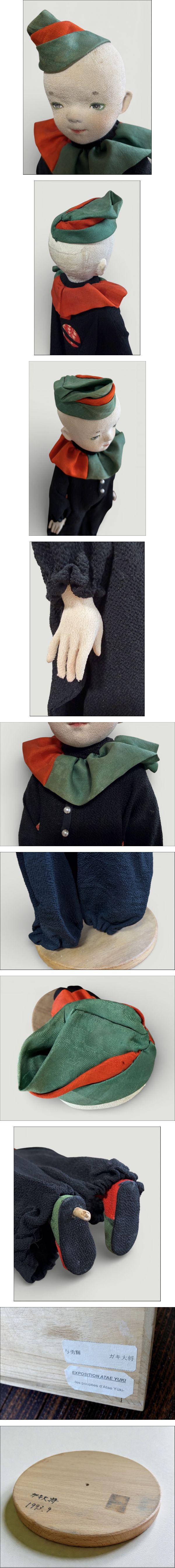 | 商品説明 | 人形作家 与勇輝(ATAE YUKI) による創作人形です。 本作品は「カキ大将」と題された少年の人形で、愛らしい表情と独特の雰囲気が印象的な作品です。 緑と赤の帽子と襟元の衣装が特徴的で、与勇輝作品らしい温かみと繊細な造形が感じられます。 顔や手の細かな表現、布地の質感など細部まで丁寧に作り込まれており、与勇輝の代表的な作風をよく表した作品です。 台座付きで、そのまま飾っていただけます。 また、作家のサイン色紙および**共箱(木箱)**が付属しています。 箱には「EXPOSITION ATAE YUKI les poupees d’Atae Yuki 」のラベルが貼られており、展覧会関連の品と思われます。 与勇輝の創作人形は国内外で高い評価を受けており、コレクターズアイテムとして人気があります。 ■作家 与勇輝(ATAE YUKI) ■作品名 カキ大将 ■付属品 ・共箱(木箱) ・作家サイン色紙 ■サイズ 約38.5 x 13 x 7 cm (本体のみ) ■状態 中古品 目立つダメージは見られませんが、経年による細かなスレや布地のわずかな使用感などはご了承ください。 詳細は写真にてご確認ください。 ■発送 丁寧に梱包して発送いたします。 送料込み 落札後48時間以内にご連絡ください。 商品に不具合や問題がございましたら、商品到着後5日以内にご連絡ください。 ※中古品のため状態に神経質な方は入札をご遠慮ください。 ※ノークレーム・ノーリターンでお願いいたします。 |