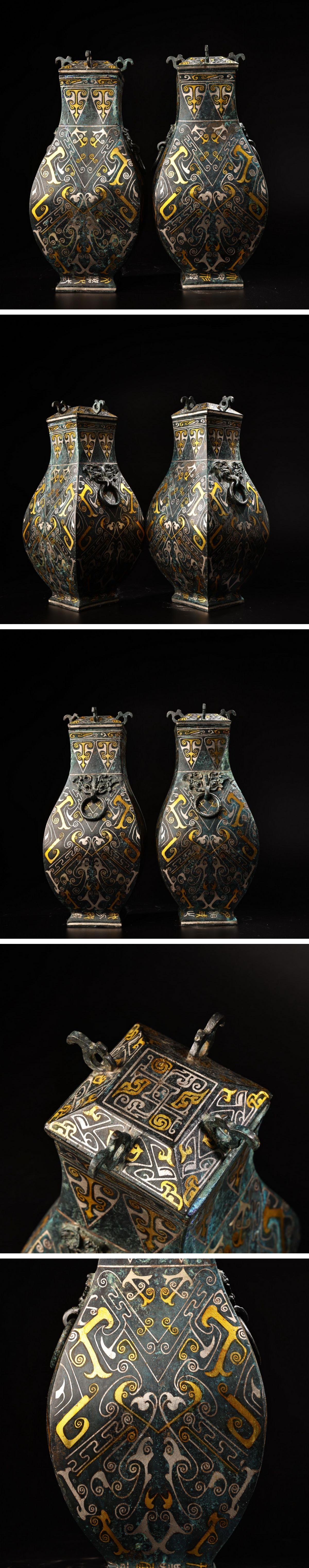 【雲錦】1円から 時代物 ブロンズ象嵌金銀 四方壺一双 古青銅器 時代物保証 材質保証 古美術 骨董品8L19-4WN3 [浏览原始页面]
