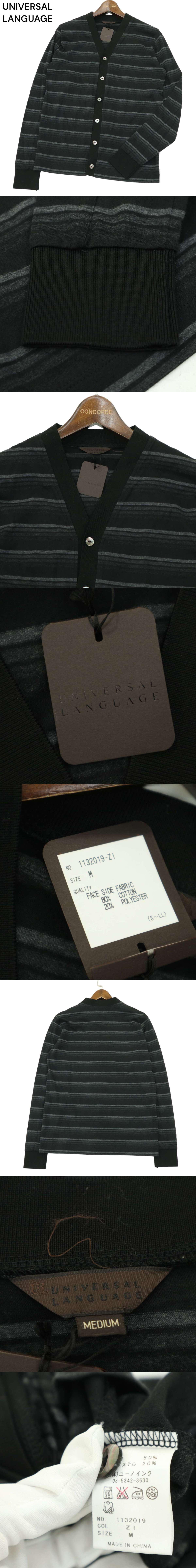 | 【新品 未使用】 UNIVERSAL LANGUAGE ユニバーサルランゲージ 通年 ボーダー コットン ニット カーディガン Sz.M メンズ A4T06501_6#O | |||