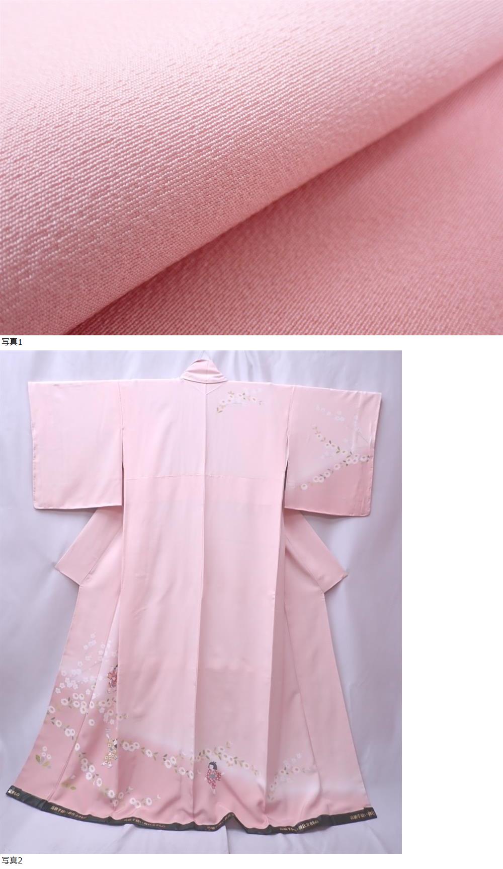 高級手縫い 正絹 訪問着 身丈162cm(+9cm) 裄丈67cm 童女 梅 菊 ピンク 暈し しつけ糸付き | ||||