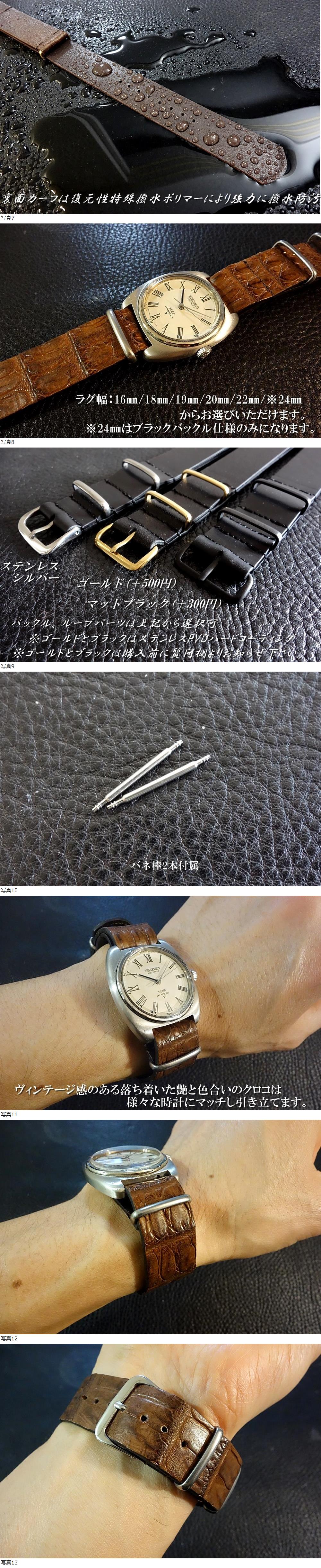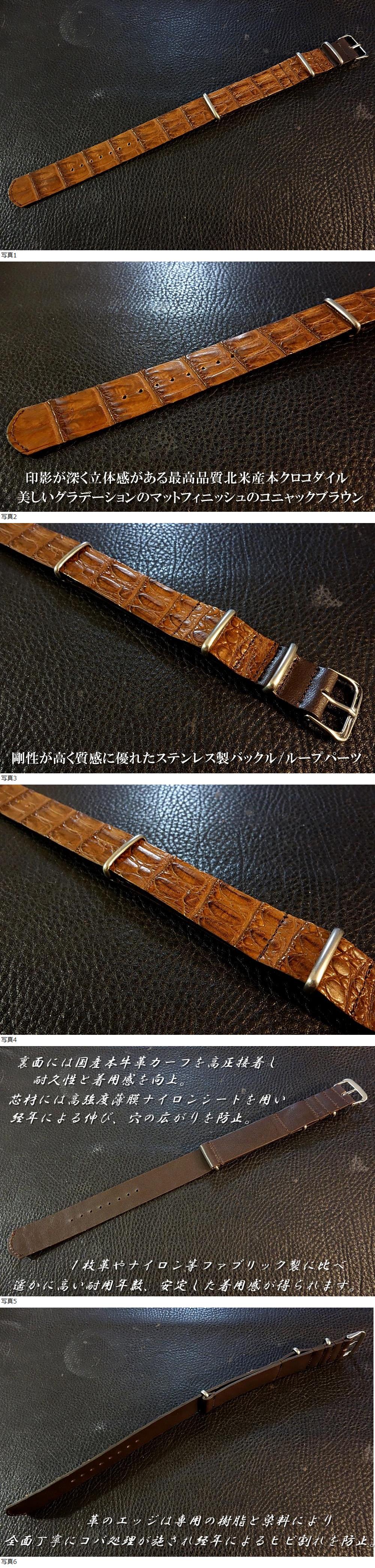 | ◆クロコダイルNATO G10Strap◆北米産本クロコダイル カスタムオーダー(ラグ幅/バックルカラー) コニャックブラウン 日本製 受注製作(納期10日前後) |