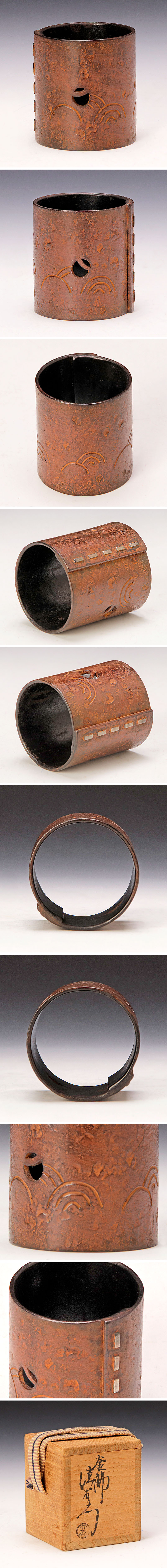 【十四代大西清右衛門】 1888年~1960年 釜師・大西家は、初代浄林が二人の弟達と京へ上洛し、三条釜座の座人になったのが始まりです。十四代浄中は独自の地肌を作り始め、即中斎宗匠の字や絵を鋳込んだ華やかな釜が多い。 |