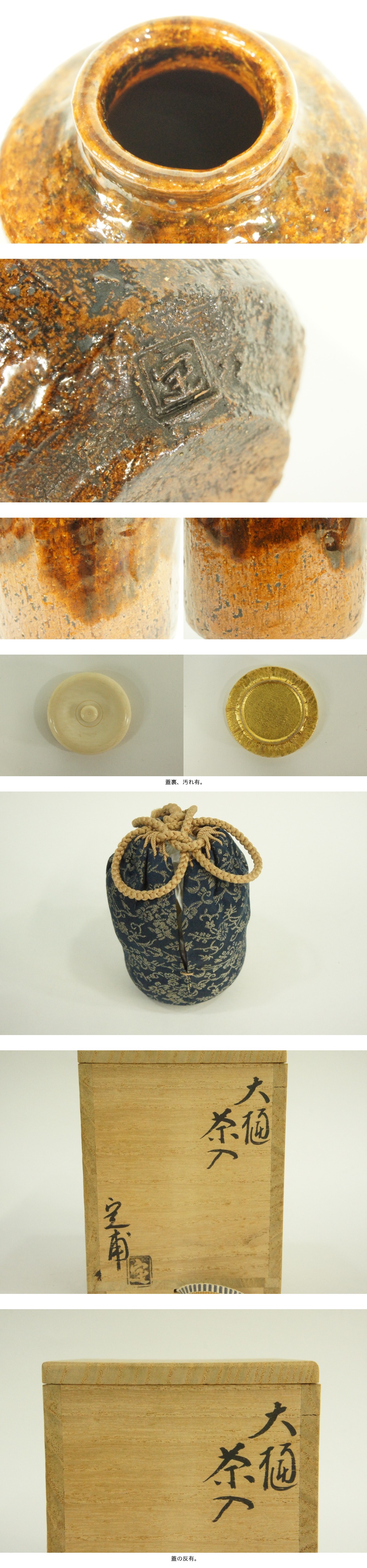 ●大樋焼 中村定子 定甫 大樋茶入 肩衝茶入 茶器 やや汚れ有 共箱 仕覆 茶道具