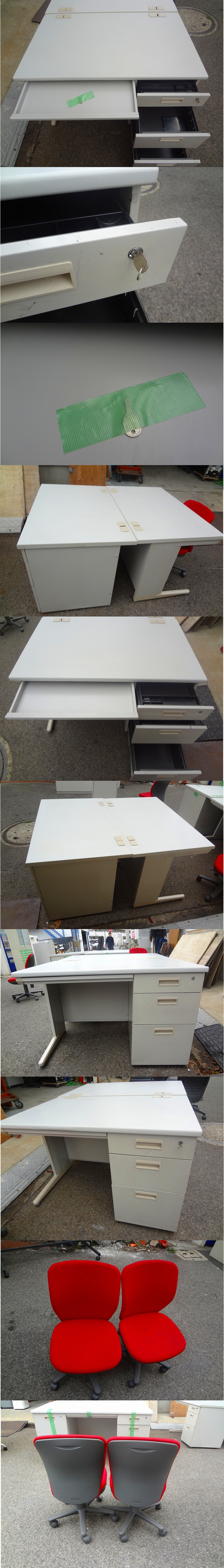 | 商品詳細 | ※必ず詳細(写真)にて 商品状態など ご確認ください 状態 :中古 数量 : 机2椅子2 サイズ(約) W1110 D700 H700mm 1台可鍵付きです。 詳細は詳細画像にてご判断ください。 引き上げ時現状出品 中古品/引上げ品の為 画像に無い傷・汚れ・へこみ・使用感・部品欠品 破損ヵ所等がある場合がございます。 予めご了承ください。/現状お渡しになります。