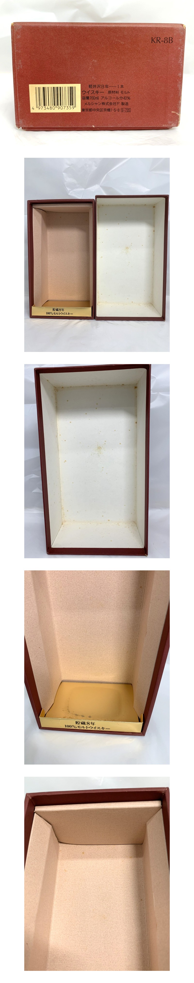 銘柄【ウイスキー Mercian メルシャン 軽井沢 貯蔵8年 100%モルトウイスキー 700ml 40% 未開栓 箱付】 内容量/700ml 度数/40% 状態/ラベルにシミ汚れ有 箱にやや汚れ、シール跡、小傷有 付属品/箱