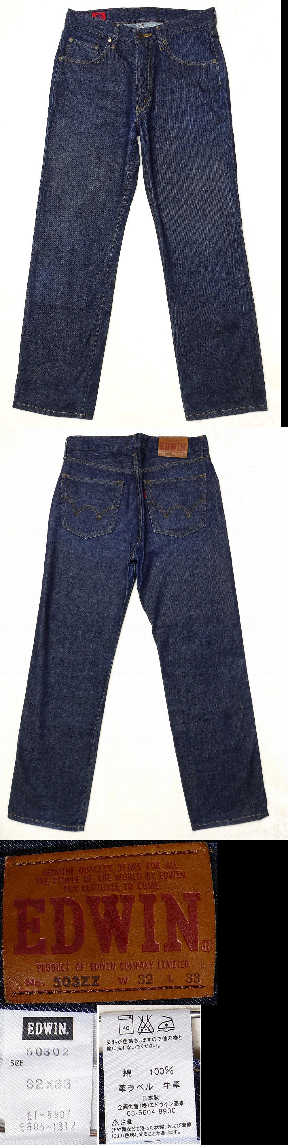 ☆ご覧いただきありがとうございます。 【ご入札される方は必ずコメント欄も含めお読みください。】 ■ ■ ■ ■商品詳細■ ■ ■ ■ ・【メーカー】EDWIN(エドウィン) ・【品番】50302(ET-5307 / E505-1312) ・【カラー】インディゴ(濃紺) ・【サイズ】32×33 ・【素材】綿 100% / 革ラベル:牛革 ・【生産国】日本 サイズは必ず実寸でご確認ください。 実寸
