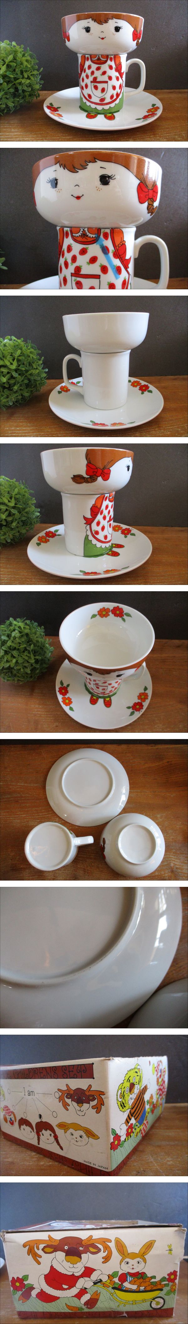 【昭和レトロ・箱入・レア】日本製 3ピース 子供用 スタッキング 食器セット 女の子 ビンテージ プレート&マグ&ボウル 希少 パケ買い | |||