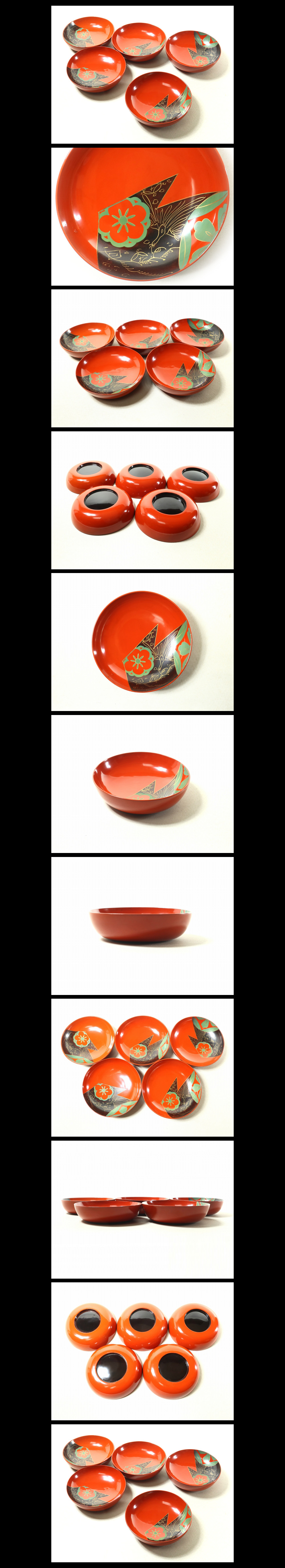 ●c1037●【漆絵蒔絵菓子皿5客 窓絵 鳳凰花波 朱底黒】検お茶会煎茶道具茶懐石道具吸皿酒木皿つまみ皿取り皿●西瓜●