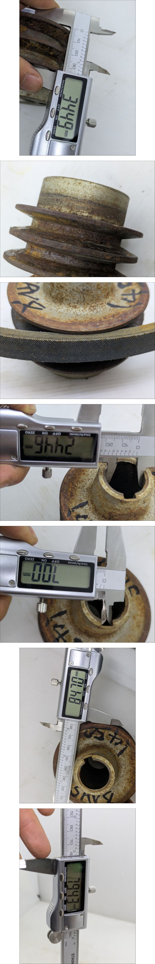 | ●●最後まで読んで下さい●●納得した上でご入札してください●● ●大型機械用のアカウントは**こ ち ら**です。 ●当方の別出品物を同時購入しても送料分安くなりません。 ●発送料金は入札ボタン付近にあり、沖縄、北海道、離島以外一律です。 ●塩尻市から発送します。 ●離島発送はできない場所がございますので、事前にお問い合わせください。 ●発送日は月、水、金、日です。急ぎの場合はご連絡をお願いします。 ------------------------------------------------------------------------------------------- ●メーカー:マメトラ ●型式:SRV4 ●2連のプーリーです。 ●Bベルトです。 ●軸 径:約Φ25mm ●鍵 幅:約7mm ●プーリー外径:約Φ84.5mm ●全体 厚さ:約79mm ●ベルト部 厚さ:約34mm ●書いたインクは消さずに発送します。 ●素人寸法のため、測定誤差があります。 ●中古品のため、サビや汚れがあります。 ●錆は各自で取り除いてください。 ●現状写真の通りのまま送ります。 ------------------------------------------------------------------------------------------- ●下の方にも画像がございます。※たまに写真の枚数が不足していて画像がない場合があります。 ●落札後、ご指定配達の時間帯がある場合はあらかじめご連絡してください。 | |||