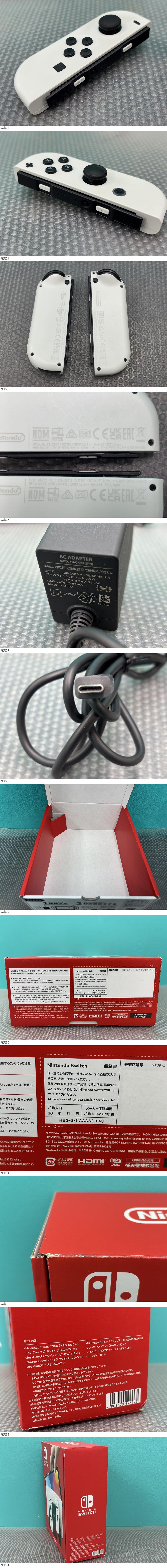 出品の商品は 21456★Nintendo Switch 任天堂Switch ニンテンドースイッチ 有機ELモデル HEG-S-KAAAA XTJ番 本体 周辺機器 ゲーム機 になります。 出品詳細を最後まで読んで頂き、入札をご検討下さい。 ・画像で詳細・状態をご確認ください。 ・頂き物です。 ・使用していた中古品です。 ・目立つ傷や汚れはありません。 ・初期化済みです。 ・元箱に多少のスレや傷があります。 ・SDカード、ゲームソフトはありません。 ・付属品は写真に写している物がすべてになります。 ・ご確認したい点があれば、質問よりご連絡ください。 専門知識が必要なご質問にはお答え出来ない事もありますが、可能な限りご返答させて頂きます。 ・画像が全てとなりますので掲載画像をご覧の上ご判断頂きご入札をお願い致します。 | ||||