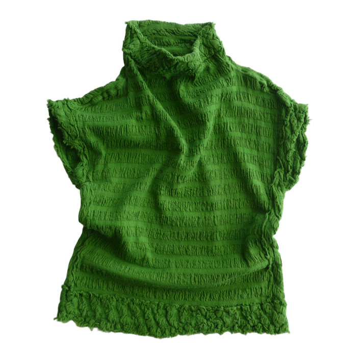 | ミー イッセイミヤケ(me ISSEY MIYAKE) コットン シャーリング ノースリーブトップス グリーン MI82FK452 ウェア(中古) |