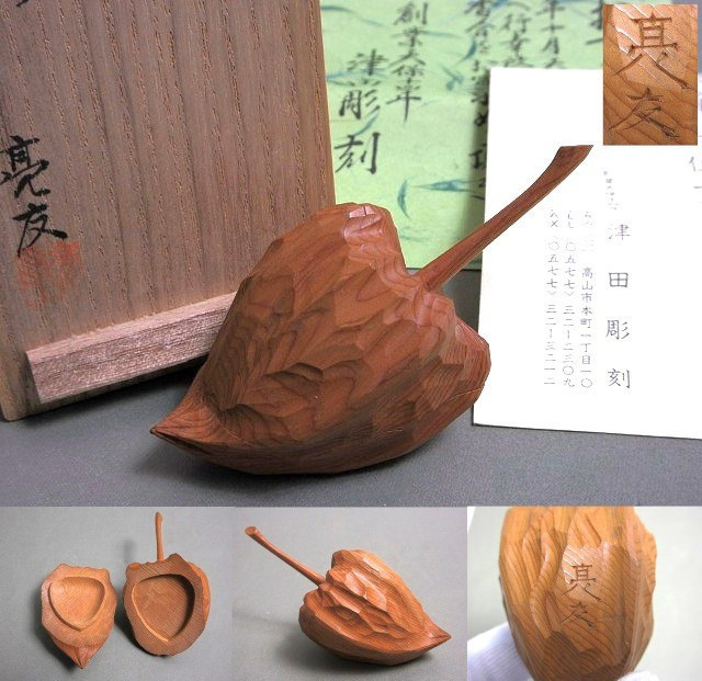 津田 亮友 ほおずき 香合 共箱 栞 津田彫刻 一位一刀彫 佳香【説明欄に詳細写真有り】の出品です。