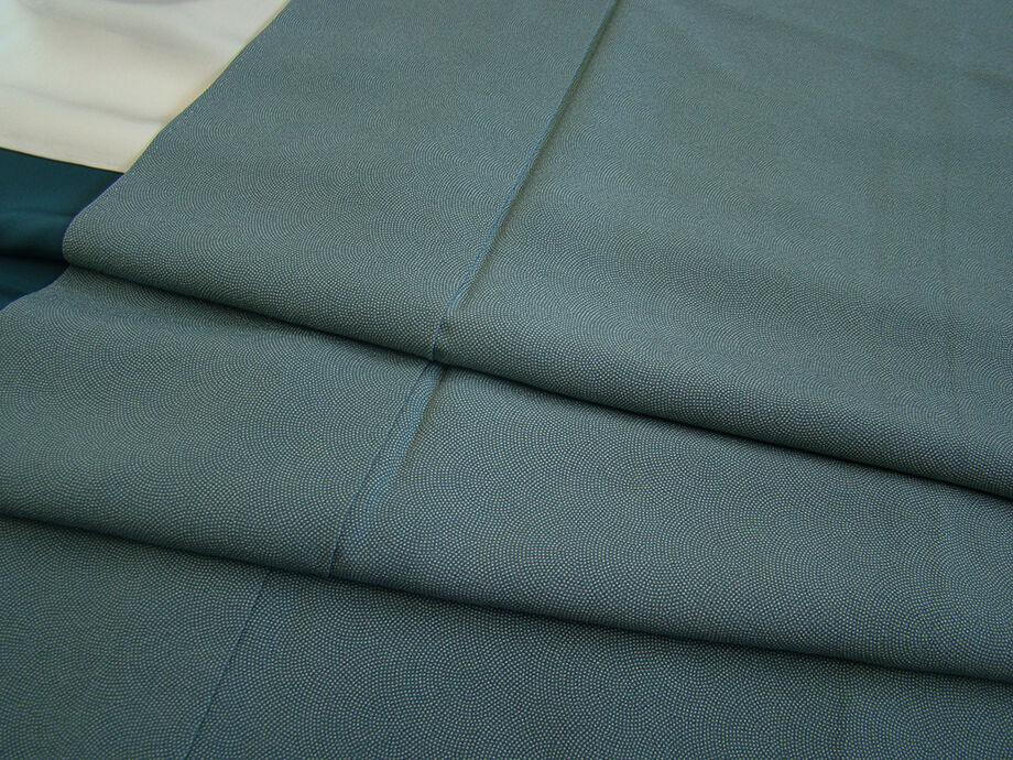 | 商品説明 | こちらのお品は「袷」ですので10月から5月までお召頂ければと思います。 とてもしなやかな手触り良い滑らかな重めのちりめん地の生地、 青碧色地に灰白色の極め細やかな「鮫」の江戸小紋柄の染柄、 江戸小紋は、遠目からは無地にもみえ色無地感覚でお召し頂けますので大変重宝致します。 シンプルな色彩の世界に帯や小物次第で様々な自分らしいコーディネートを愉しめ、 幅広いTPOにあわせてお役立て頂けるお茶事にも最適のお品でございます。 八掛はびろうど色(正絹)、背に「蔦」の刺繍紋1ヶ入っております。 |