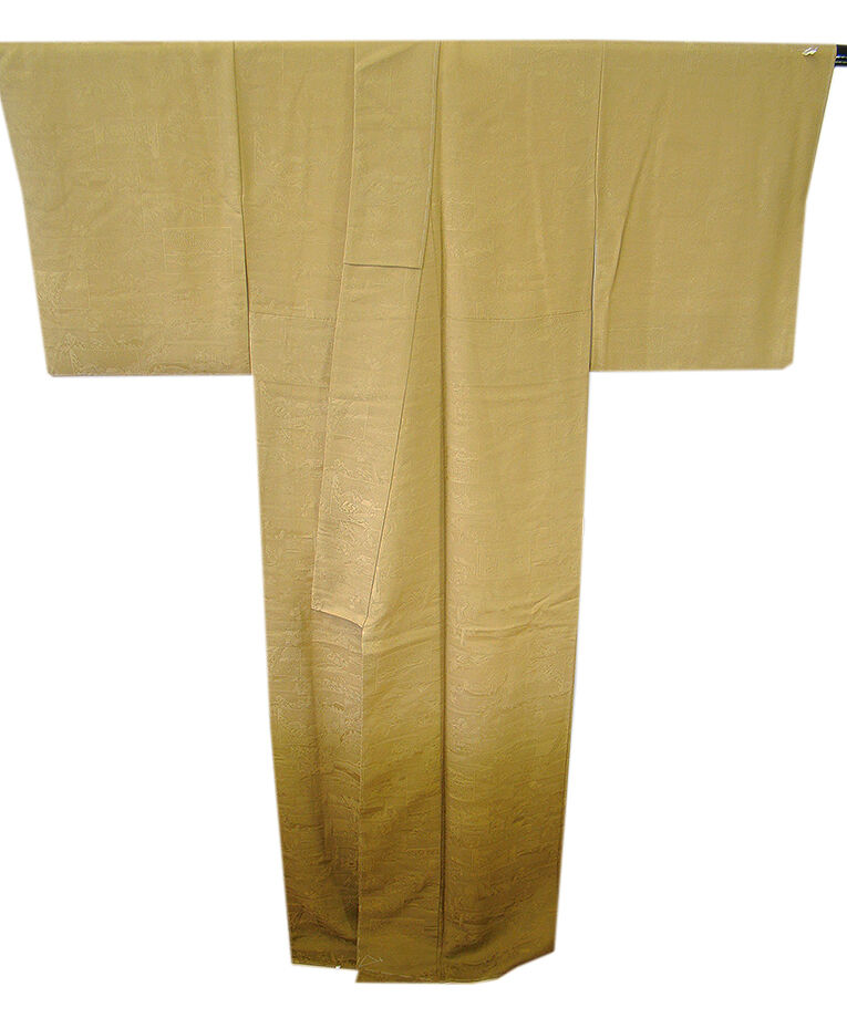 | 商品説明 | こちらのお品は「袷」ですので10月から5月までお召頂ければと思います。 とてもしなやかで柔らかな着心地良いぽってりとふっくらした重めの極上ちりめん地の生地、 木蘭色地に裾にかけて桑茶色ぼかしに東海道の地模様入り、 八掛は共色(正絹)、背に紋1ヶ入っております。 |